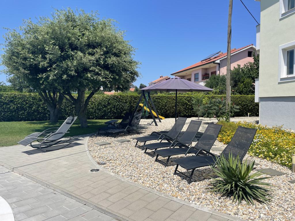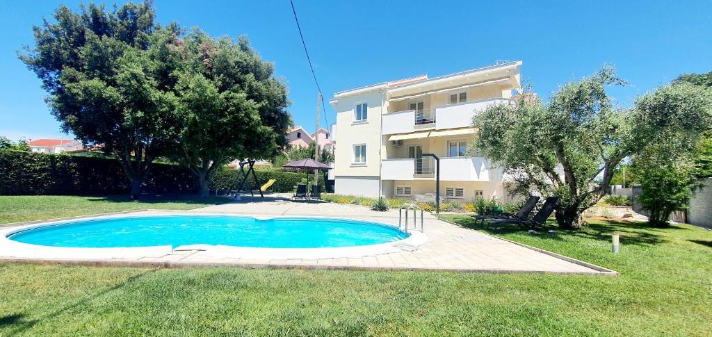 Kuća s više apartmana nalazi se u turistički poznatom mjestu Zatonu, između prekrasnog grada Zadra i povijesnog gradića Nina. Prostrana ograđena okućnica idealne je za obiteljski odmor i opustanje. Turističko naselje s bogatom ponudom sadržaja za djecu udaljeno je 1,5 km. Apartmani su kompletno opremljeni s bazenom, vrtom ,sadrzajem za djecu i osiguranim parkirnim mjestom.