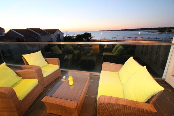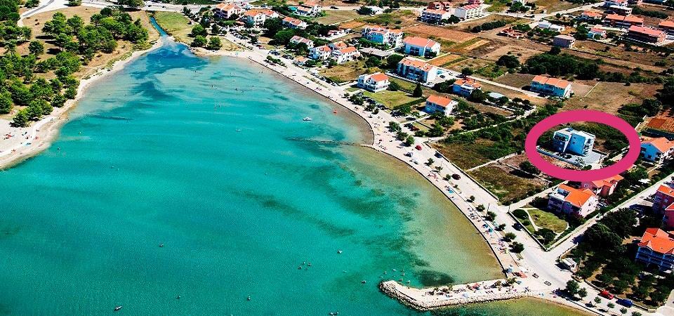 Moderno opremljeni apartmani smještani direktno uz plažu. Objekt se nalazi 5 minuta hoda do Zaton Holiday Resorta. Udaljenost do Nina je cca 2 km i do Zadar 12 km.