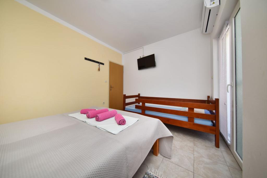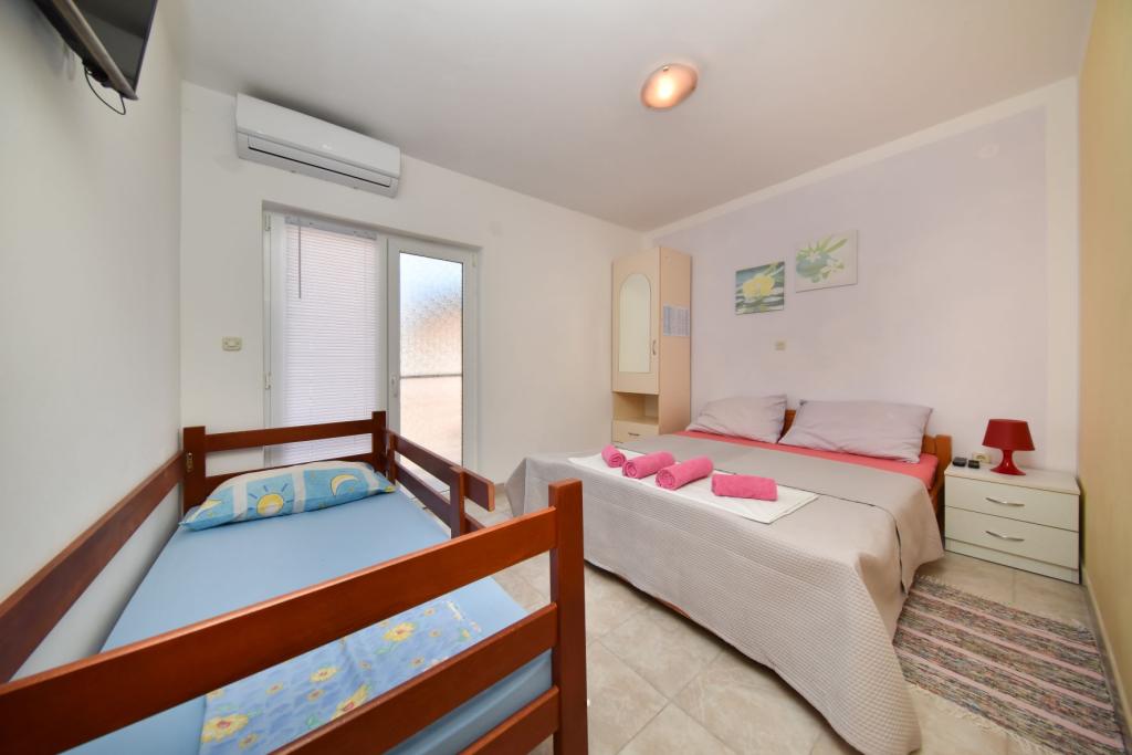 Postovani gosti Nasa kuca udaljena oko 300 metara od prekrasne pjescane plaze, nudi vam apartmane koji ce vam udovoljiti sve vase potrebe za jedan miran i udoban odmor. Svakom apartmanu pripada besplatan parking koji se nalazi u neposrednoj blizini kuce. Buduci da se kuca ne nalazi na prometnoj ulici buka je minimalna. Na svim vratima i prozorima nalazi se mreza protiv komaraca. Apartmani su klimatizirani i kompletno opremljeni.