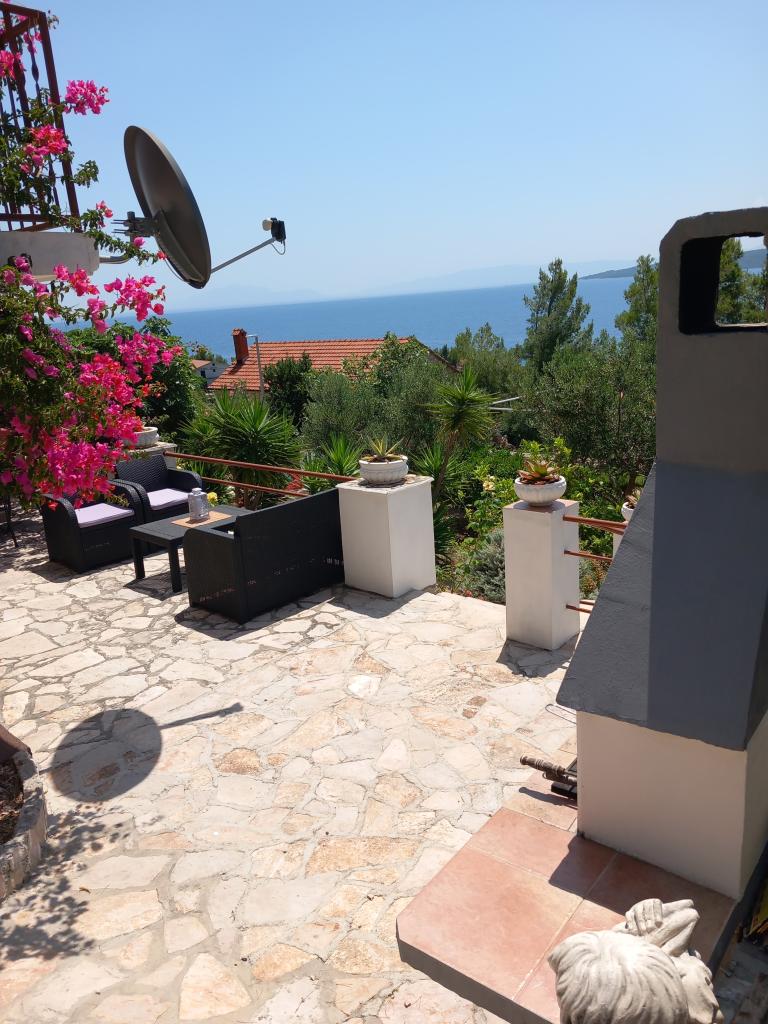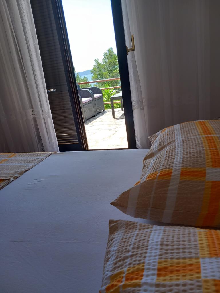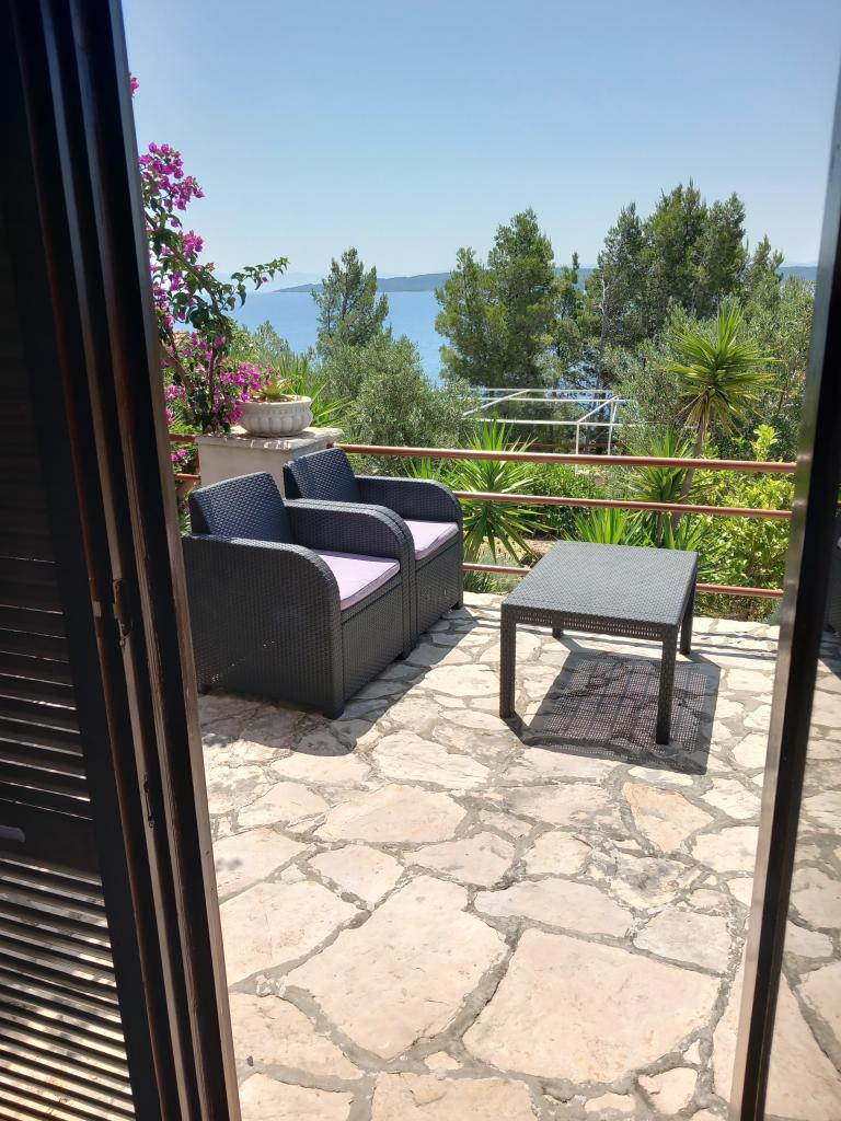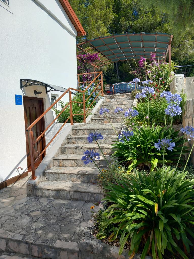 Iznajmljujemo samo jedan kompletno opremljen apartman u zasebnoj etaži obiteljske vile koja je od mora udaljena 130metara (klima, wi-fi, sat tv, perilica rublja, mikrovalna pećnica, aparat za kavu) što znači da ste jedini gosti i imate punu privatnost. Apartman se sastoji od dvije spavače sobe sa bračnim krevetima, kuhinje sa boravkom (kauč na razvlačenje), kupaonice, hodnik i velika terasa sa prekrasnim pogledom na otvoreno more, otok Šćedro, Korčulu i poluotok Pelješac okružena vrtom punim raznog mediteranskog bilja. Parking je u ograđenom dvorištu. Roštilj u sklopu terase. U dvorištu je vanjski solarni tuš. Plaže, restorani, pekara, dječje igralište na udaljenosti do 250m.