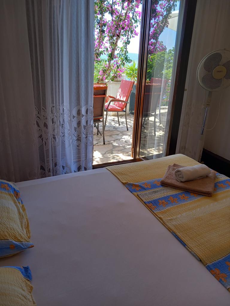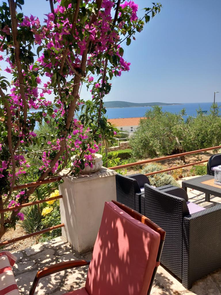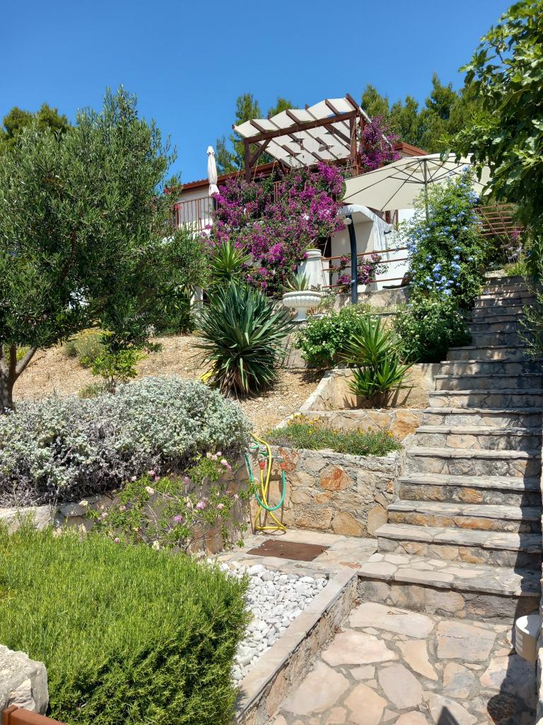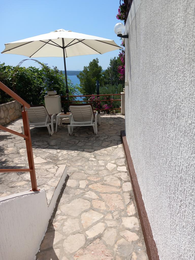 Iznajmljujemo samo jedan kompletno opremljen apartman u zasebnoj etaži obiteljske vile koja je od mora udaljena 130metara (klima, wi-fi, sat tv, perilica rublja, mikrovalna pećnica, aparat za kavu) što znači da ste jedini gosti i imate punu privatnost. Apartman se sastoji od dvije spavače sobe sa bračnim krevetima, kuhinje sa boravkom (kauč na razvlačenje), kupaonice, hodnik i velika terasa sa prekrasnim pogledom na otvoreno more, otok Šćedro, Korčulu i poluotok Pelješac okružena vrtom punim raznog mediteranskog bilja. Parking je u ograđenom dvorištu. Roštilj u sklopu terase. U dvorištu je vanjski solarni tuš. Plaže, restorani, pekara, dječje igralište na udaljenosti do 250m.