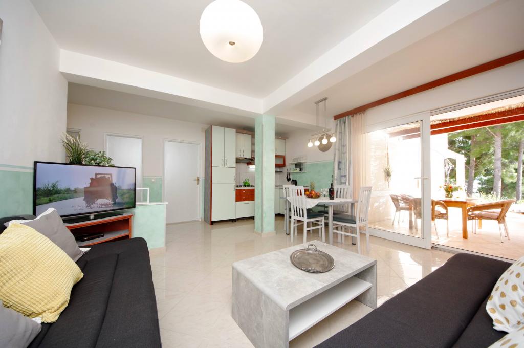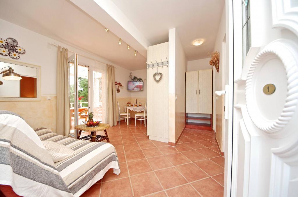 Pročitaj više Smještajne jediniceNa dan odlaska molimo napustiti APP do 10. 00 sati. Na dan dolaska APP je slobodan od 14. 00 sati. Akontacija za boravak iznosi 30% od cijelokupnog iznosa. Početak i kraj boravka u glavnoj sezoni je PETAK. Dolazak i odlazak van sezone- po dogovoru. ZAVRŠNO ČIŠČENJE. 50,0-60,0 eur. DODATNA OSOBA: 10,0 - 15,0 eur/dan. Rezervacija se smatra potvrđenom nakon što je uplaćena akontacija u iznosu 30%. Plaćanje rezerviranog smještaja vrši se prvi dan dolaska. Plaćanje apartmana moguće je samo u gotovini.