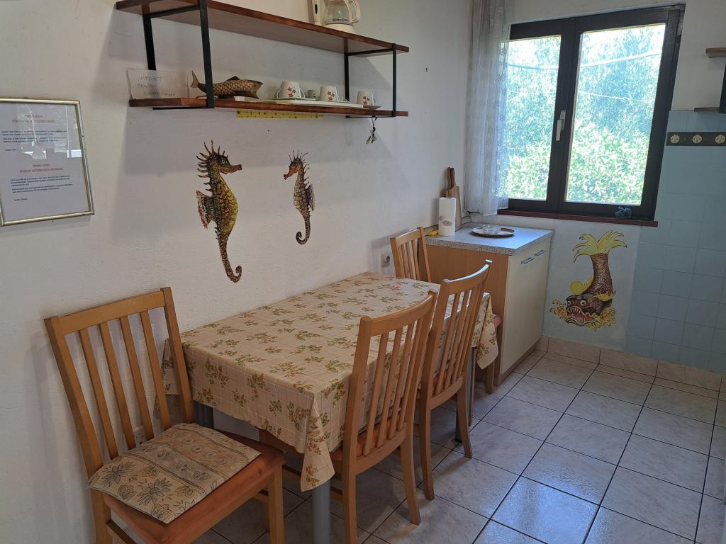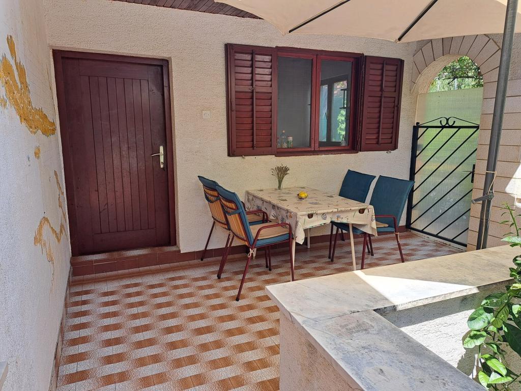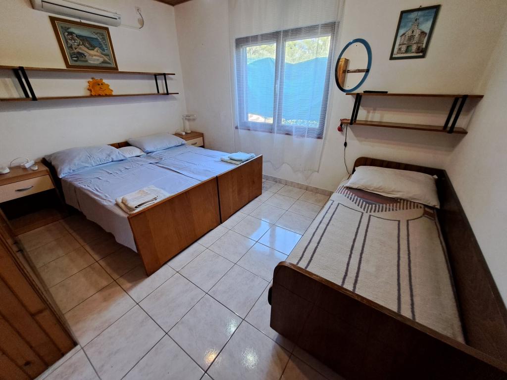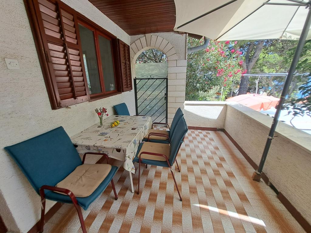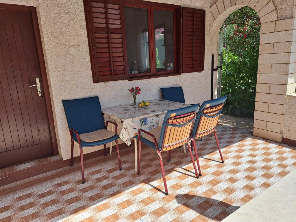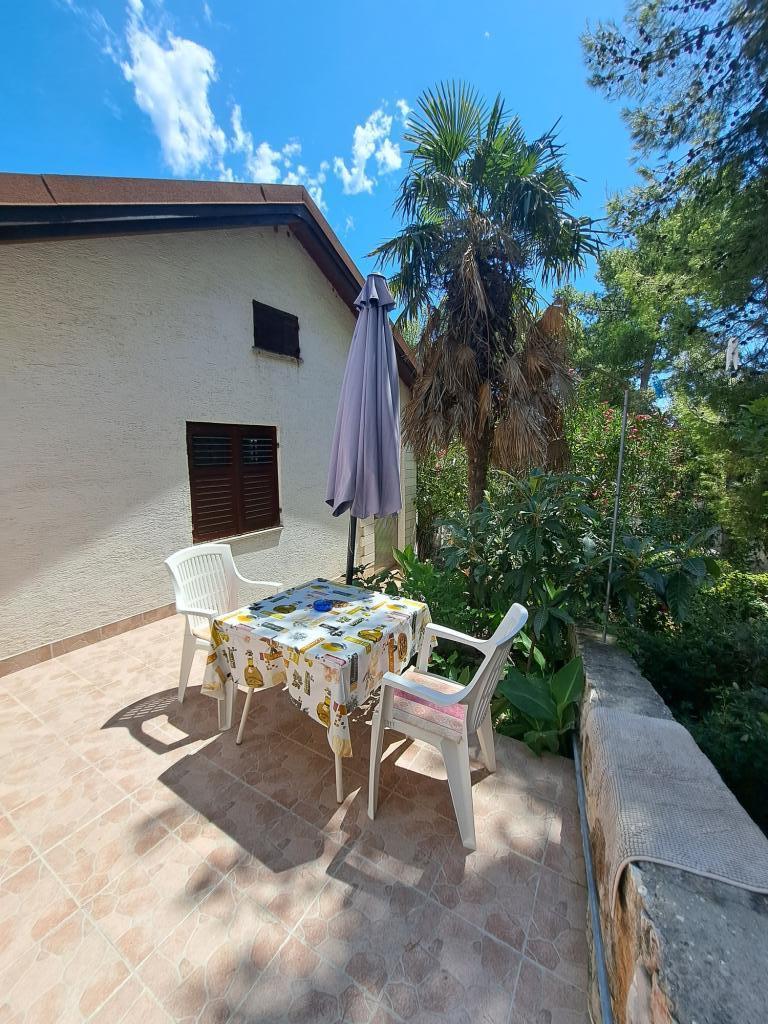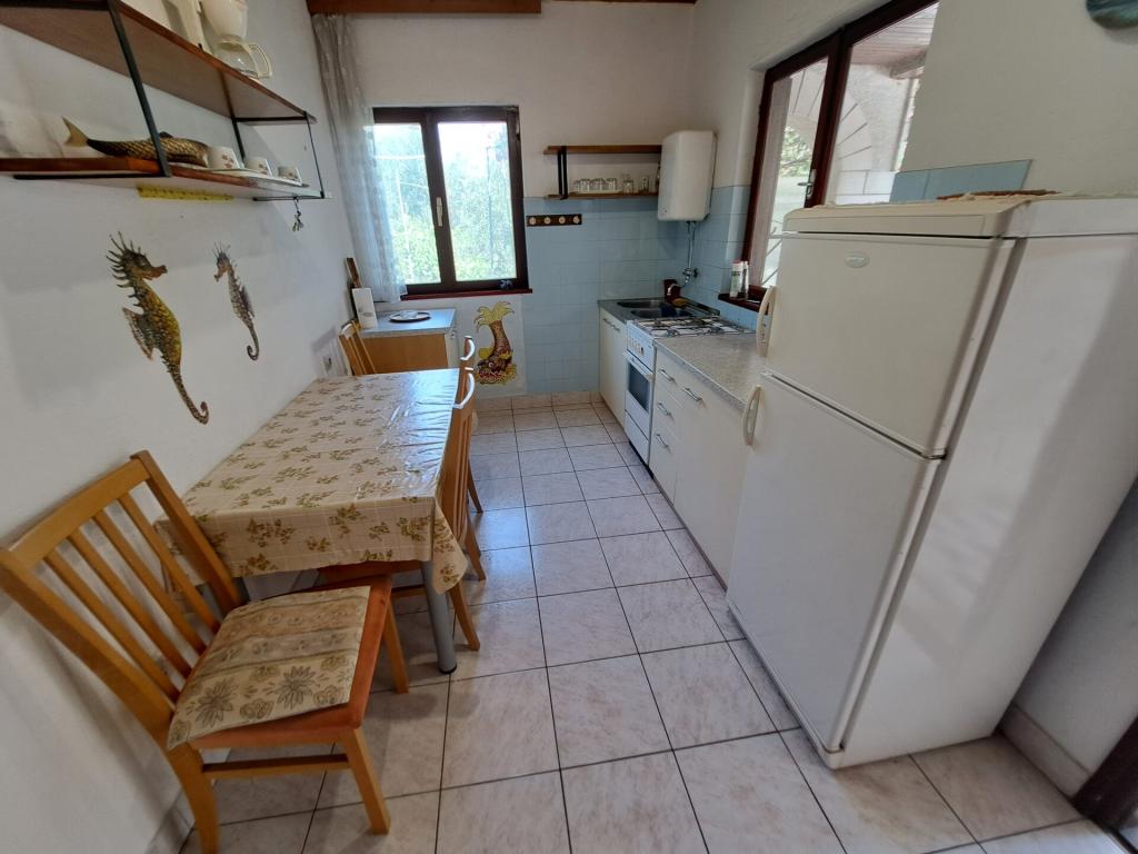 Kuća se sastoji od dvosobnog apartmana A4 (4+0), te studio apartmana A2 (2+1) u prizemlju. Kuća je nova u borovoj šumi u blizini prekrasne šljunčane plaže udaljene 60m od plaže. Apartman A4, ID51294 se sastoji od dvije spavaće sobe,2+2 ležaja (bračni kreveti), po potrebi još jedan ležaj. Apartman A4(4+0) je u prizemlju, s kuhinjom, kupaonicom i nadkrivenom terasom za ručanje i sjedenje te drugom terasom za djecu i sunčanje. Veličina apartmana je cca: 50 m2, terase 15 m2 i 25 m2. Nudimo Vam i novi Studio apartman A2 (2+1) ID 51296 veličine 40 m2 sa pripadajućom terasom. SAT TV i klima, internet dostupan, te garaža za auto. Apartman između ovih navedenih za iznajmljivanje koristi moja familija tokom ljeta.