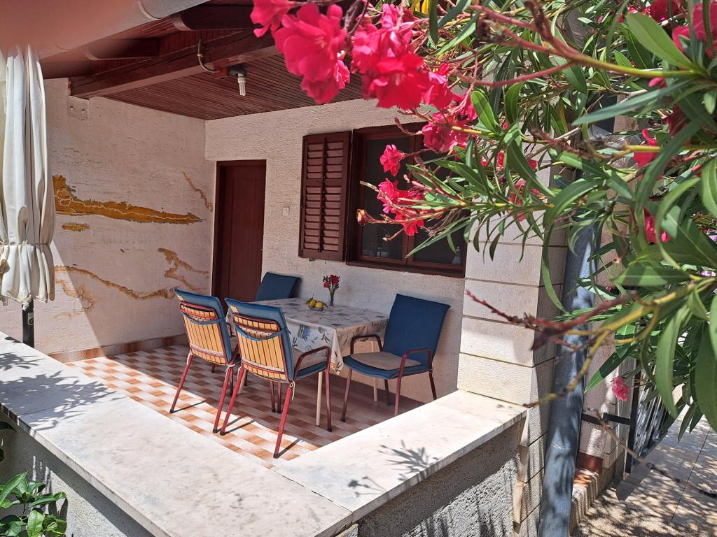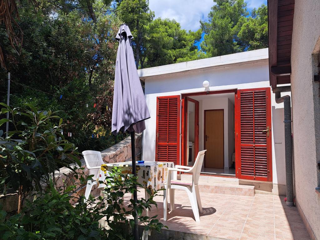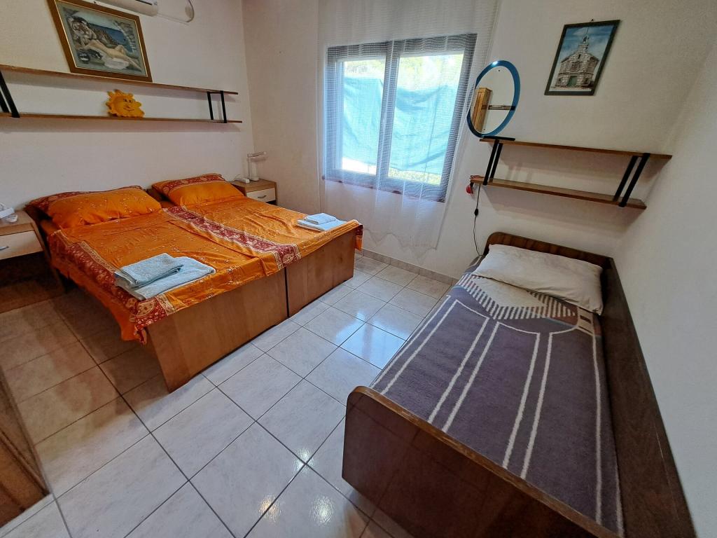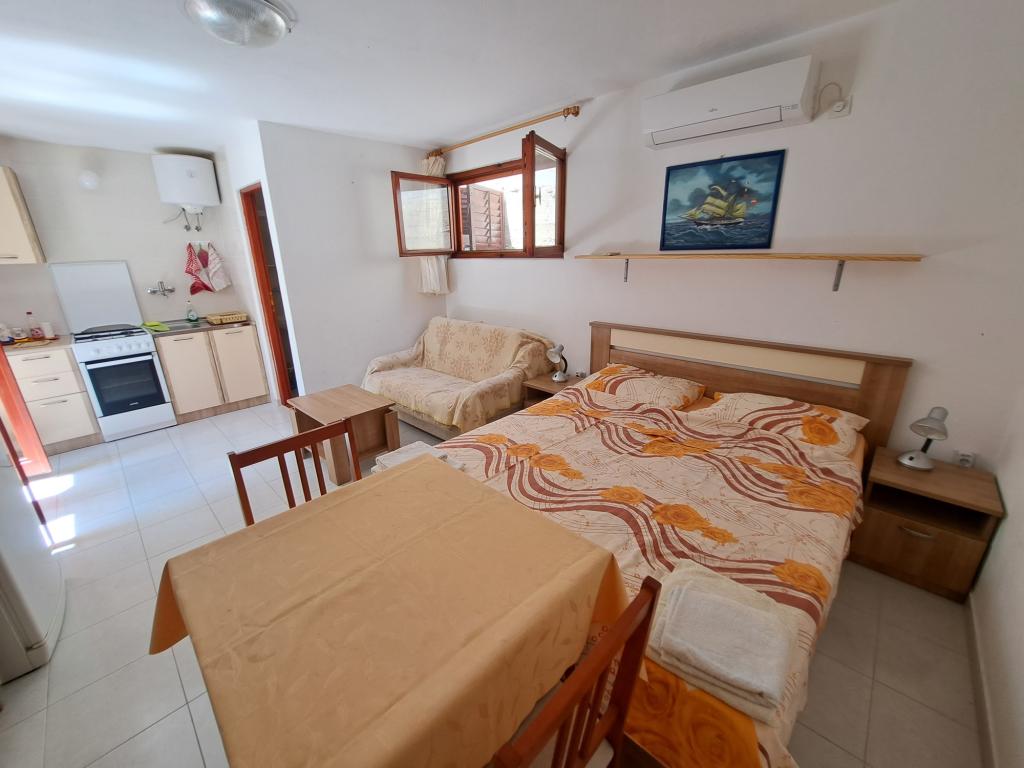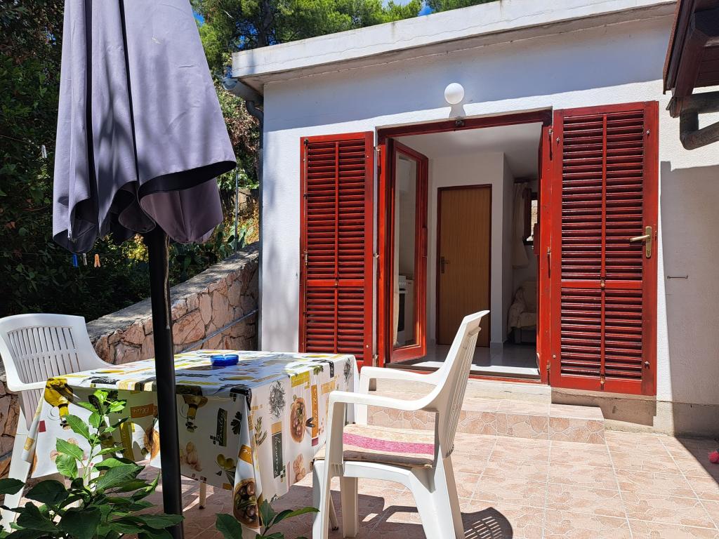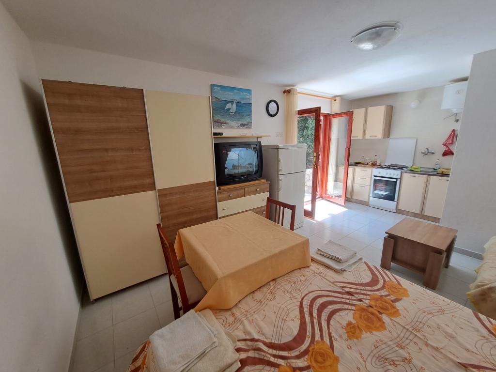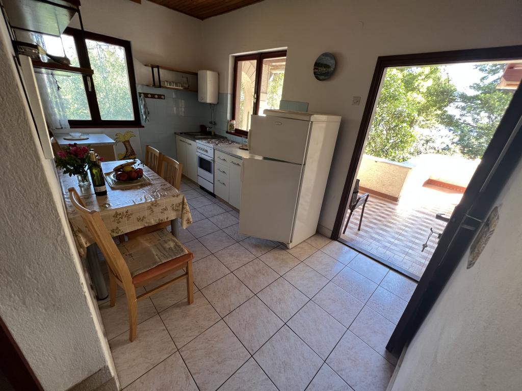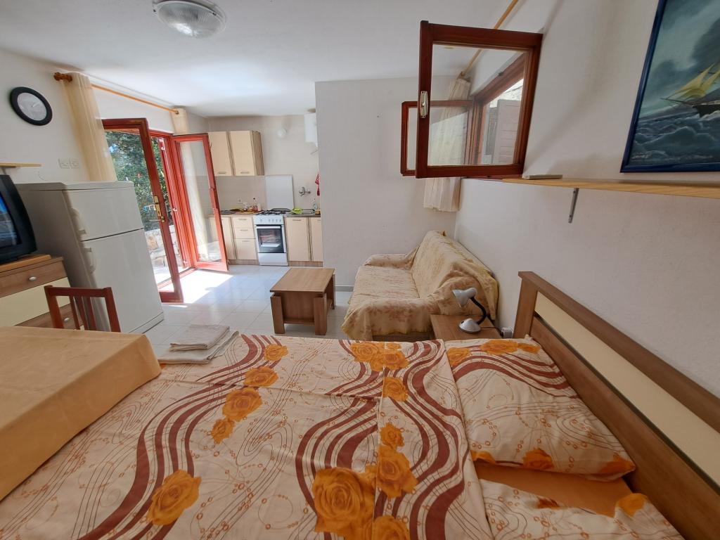Kuća se sastoji od dvosobnog apartmana A4 (4+0), te studio apartmana A2 (2+1) u prizemlju. Kuća je nova u borovoj šumi u blizini prekrasne šljunčane plaže udaljene 60m od plaže. Apartman A4, ID51294 se sastoji od dvije spavaće sobe,2+2 ležaja (bračni kreveti), po potrebi još jedan ležaj. Apartman A4(4+0) je u prizemlju, s kuhinjom, kupaonicom i nadkrivenom terasom za ručanje i sjedenje te drugom terasom za djecu i sunčanje. Veličina apartmana je cca: 50 m2, terase 15 m2 i 25 m2. Nudimo Vam i novi Studio apartman A2 (2+1) ID 51296 veličine 40 m2 sa pripadajućom terasom. SAT TV i klima, internet dostupan, te garaža za auto. Apartman između ovih navedenih za iznajmljivanje koristi moja familija tokom ljeta.