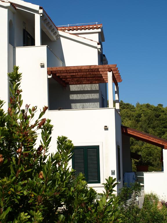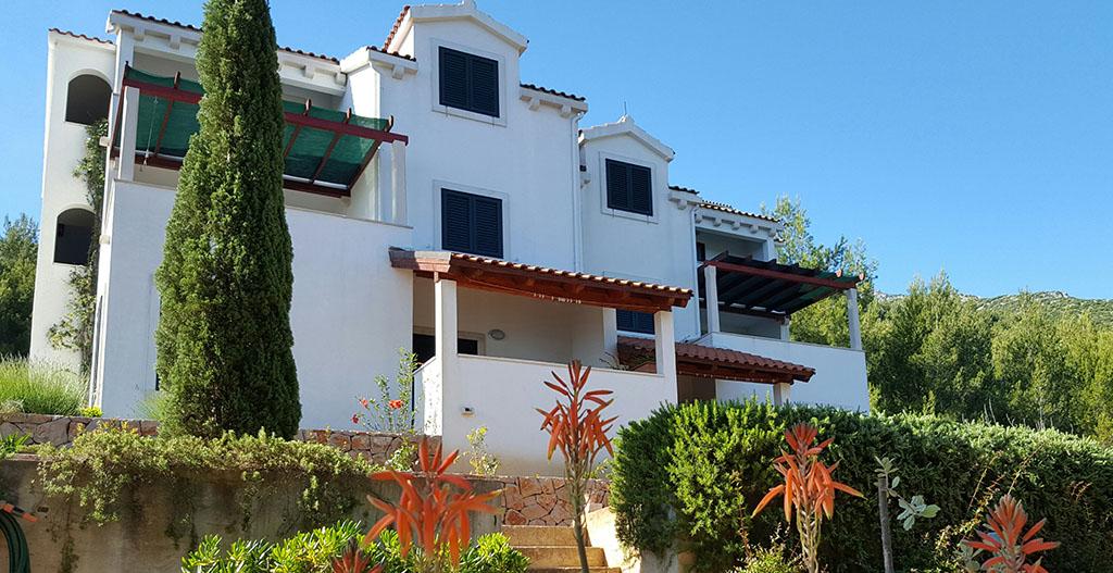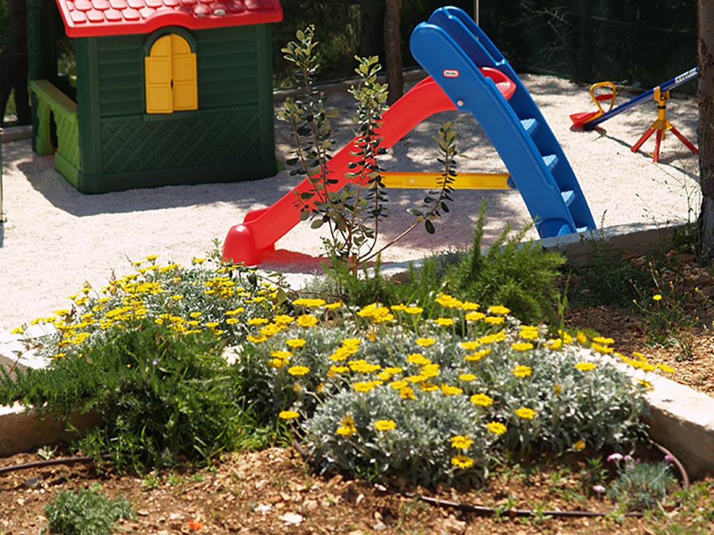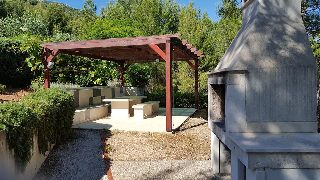 Zajednički sadržaji za sve goste su roštilj sa velikim kamenim stolom, gralište za djecu i sunčalište sa ležaljkama. Iza kuće je natkriveni parking. Apartmane okružuje veliki vrt sa mirisnim mediteranskim biljem.