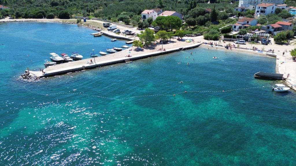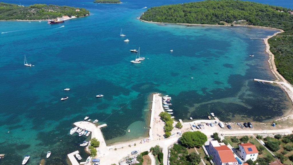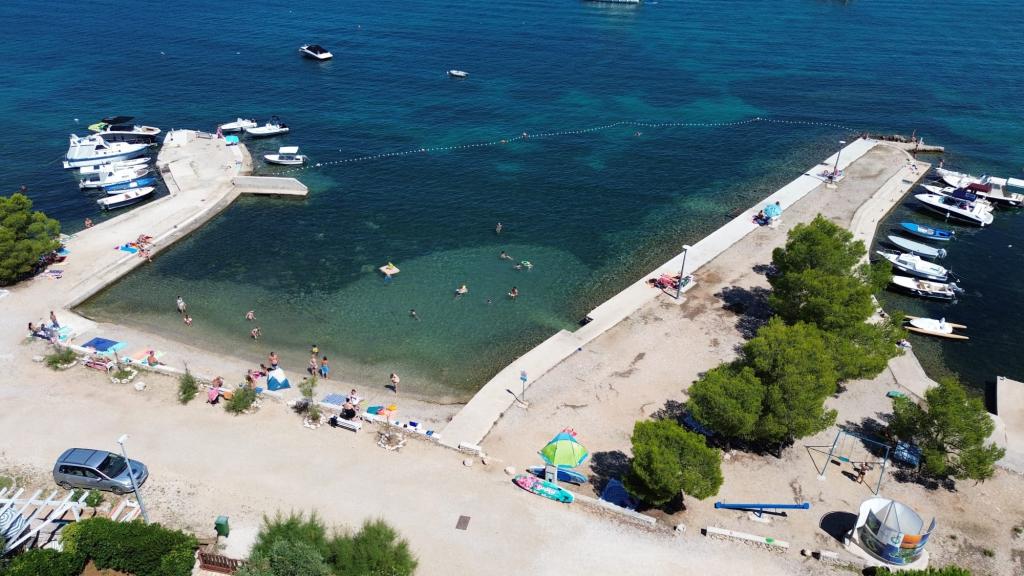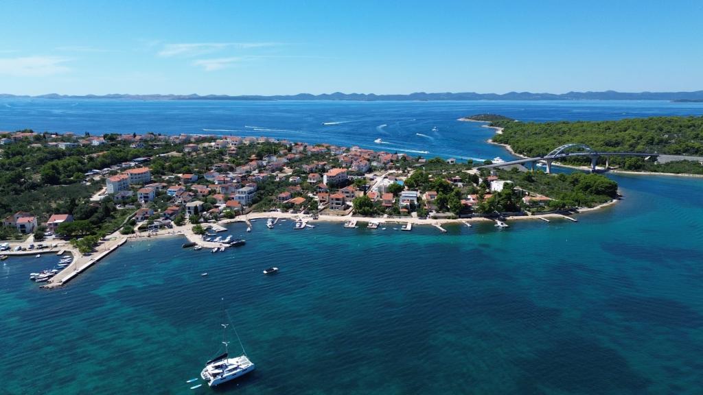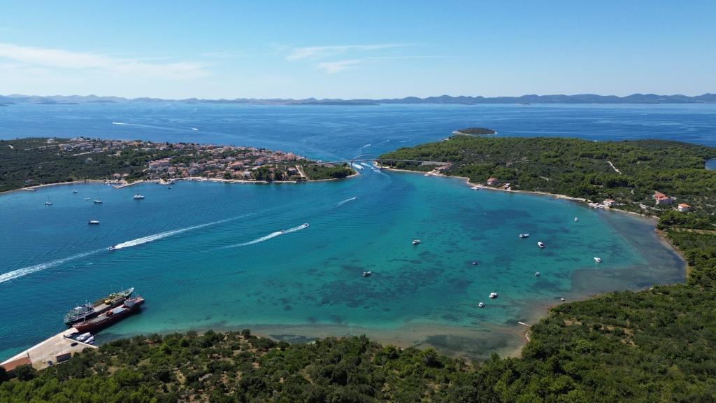 Otok Pašman-Ždrelac (kod mosta), dvosobni apartman, klima, wifi, veliki dnevni boravak s kuhinjom, terasa s vanjskim tušem, pečenjara, roštilj, siguran parking u dvorištu. Plaža je udaljena 100m pogodna za djecu, osiguran vez za čamac.