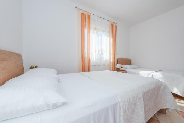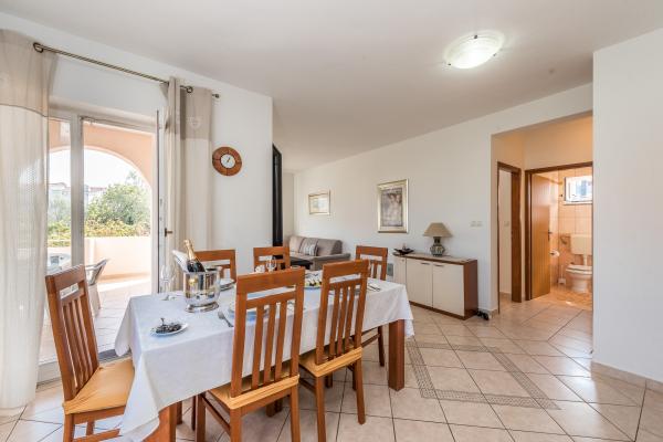 Apartmani su smješteni u mirnoj uvali u Ždrelcu na otoku Pašmanu. Udaljeni su 80 m od mora, 100 m od trgovine i 800 m od centra mjesta. Svi apartmani imaju velike terase sa pogledom na more na kojima je osigurana privatnost. Apartmani su potpuno opremljeni sa posteljinom, ručnicima i imaju perilice posuđa u kuhinji. Kreveti su udobni i izrađeni od masivnog drva, a posteljina pamučna. U dvorištu je ljetna kuhinja u kojoj se nalaze roštilj, krušna peć, sudoper, štednjak i stol sa klupama, sve potrebno za druženje sa prijateljima. Parkirna mjesta su u dvorištu objekta.