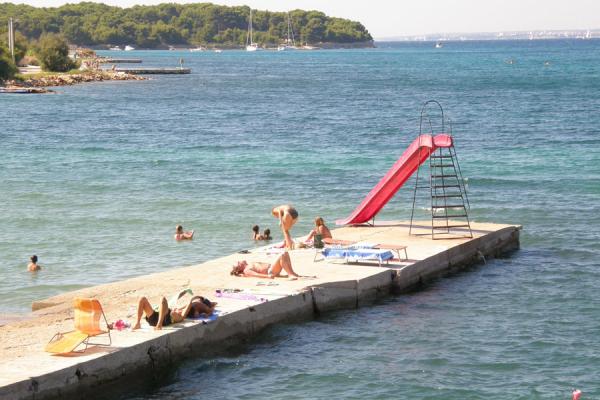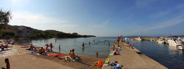 Nova dva apartmana u malom mirnom mjestu Banj na Otoku Pašmanu. U mjestu je pješčana plaža. Mjesto je bogato grožđem, smokvama i trešnjama. Mjestašce obiluje podzemnim pitkim vodama pa otuda i naziv mjesta, Banj. Na brdu Bokolj nalazi se mala crkvica Gospe od Loreta od koje seže pogled na Kornatski arhipelag, Dugi otok, Iž, Ravu, Zadar, Biograd itd. . Glavni sport u mjestu su balote (buće), a inače otok je idealan za bajkere i za malu djecu. Idealan je i za šetnje uz more do pješčane plaže Matlovac u Ždrelcu udaljene 15 minuta hoda. Šetnja kroz prirodu do vidikovca na brdu Veliki Bokolj pruža nezaboravni pogled.. U mjestu nema previše gužve kad se usporedimo sa ostalim turističkim sredinama. Povezanost s kopnom je odlična, desetak minuta autom do trajekta, bilo za Zadar ili za Biograd. Brodovi organizirano voze u Nacionalni Park Kornati na cijelodnevne izlete kroz ljepote prirode. Dolazi u obzir najam dva bicikla ili vožnja brodom. Apartmani imaju odvojene ulaze i svoj parking..