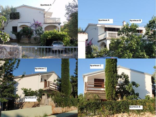 Apartmani A i B se nalaze na katu, terasa je okrenuta prema moru i od sunca je zaštićena tendama. U dnevnoj sobi se nalazi bračni krevet sa kuhinjom. U manjoj sobi je krevet na kat primjeren za djecu. Apartman ima kupaonicu. Apartman je primjeren do 4 osobe – 2 odraslih i 2 djece. Apartman ima klima uređaj. Apartman C nalazi se na katu, terasa je okrenuta prema otoku i moru. Apartman ima dvije spavaće sobe, u jednoj spavaćoj sobi nalazi se bračni krevet a u drugoj 2 odvojena kreveta. U dnevnoj sobi je jedan ležaj i kuhinja. Apartman ima kupaonicu a primjeren je za 4 - 5 osoba. Apartman ima klima uređaj. Apartman E nalazi se u prizemlju terasa je okrenuta prema otoku i moru. Apartman ima dvije spavaće sobe, u jednoj spavaćoj sobi nalazi se bračni krevet a u drugoj 2 odvojena kreveta. U dnevnoj sobi je jedan ležaj i kuhinja. Apartman ima kupaonicu a primjeren je za 4 - 5 osoba. Svi apartmani su opremljeni sa TV i SAT TV, hladnjakom od 180 litara. Više na: www.micka-apartmani.com