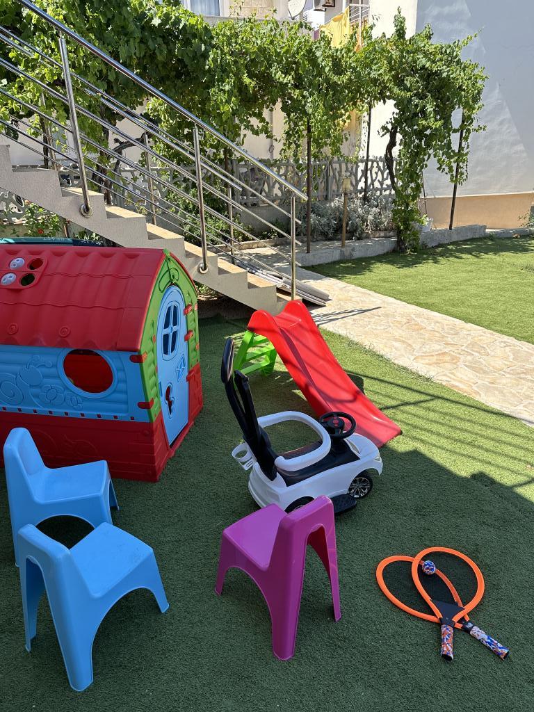 Dodatni sadržaji za potpuni užitak: kutak za djecu – sigurno i zabavno mjesto za najmlađe, zelena oaza, solarni tuš, SUP daske i kajak – za aktivan dan na moru i istraživanje obale, ljetna kuhinja s roštiljem – zajednički prostor za kulinarska druženja, piće dobrodošlice – jer vaš odmor zaslužuje topao početak. Sve je osmišljeno kako bismo vam omogućili opušten, zabavan i bezbrižan boravak – bilo da se želite odmarati, istraživati ili jednostavno uživati u morskoj idili.