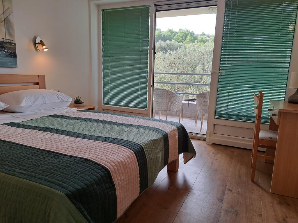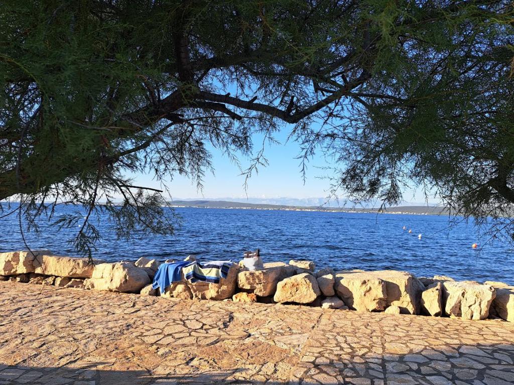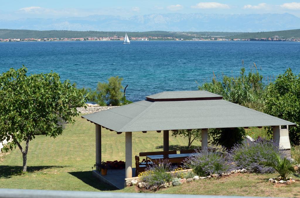 Kompletno i suvremeno opremljeni apartmani u malom mjestu, smješteni uz samo more. Zadnja smo kuća uz more u malom naselju Banj na otoku Pašmanu. Od centra mjesta ( trgovine, kafića, restorana i mjesne plaže ), udaljeni smo oko 200 m uz more Smješteni na prostranom imanju (oko 1600 m2 ). Osiguran parking. Ispred kuće je uređeni travnjak sa sjenicom. U sjenici su sadržaji: gril, 2 električne ploče za kuhanje, hladnjak, sudoper, oprema za kuhanje i ručanje, stol i klupe za sjedenje. Sjenica je gratis na upotrebu gostima uz dogovor s domaćinom. Sve je okreenuto prema moru. Na imanje se nastavlja uređena plaža (hladovina, ležaljke, klupe za sjedenje, tuš) Posebno pogodno za obitelji s manjom djecom i za sve koji žele mir i opuštanje.