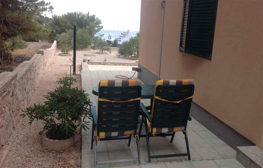 Kompletno uređen apartman u mirnoj uvali Tratinska na otoku Žirju. Lijepi položaj apartmana, pogled na more, predivno uređena okućnica. Moguće korištenje sjenice i grilla. 2 minute hoda od apartmana i nalazite se na kamenoj plaži uz iznimno čisto more. Natkriveni parking za automobil.