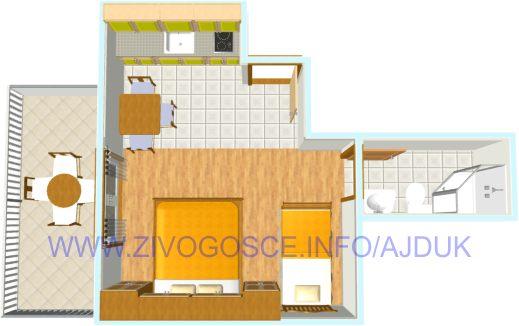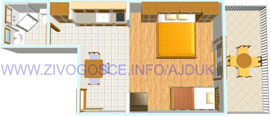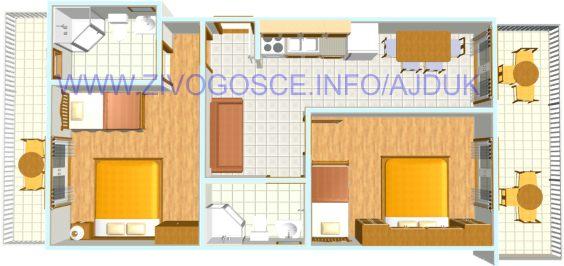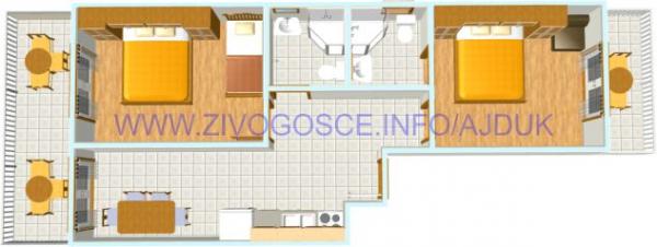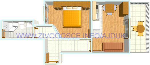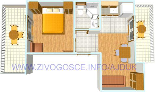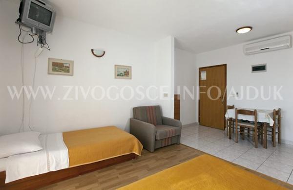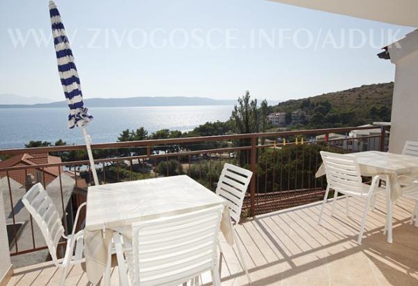 Kompletnon i suvremeno opremljeni apartmani nalaze se u mirnom mjestu Živogošće-Blato, nekoliko minuta hoda do dugačke šljunčane plaže, idealno za obiteljski odmor. Svi apartmani imaju terase s pogledom na more. Pristup internetu neograničen, parking osiguran u blizini kuće.