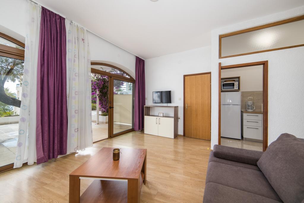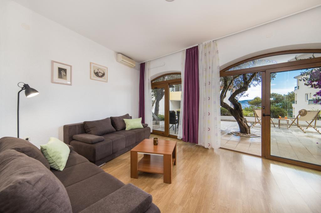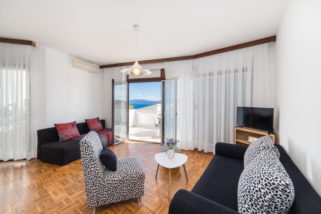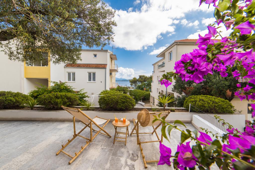 Luksuzno opremljeni apartmani s pogledom na more nalaze se 50 mtara udljeni od plaže. U blizini objekta može se uživati u mirnim restoranuma i kafićima. Idealno za sve one koji odmor žele povesti u miru, dleko od gužve.