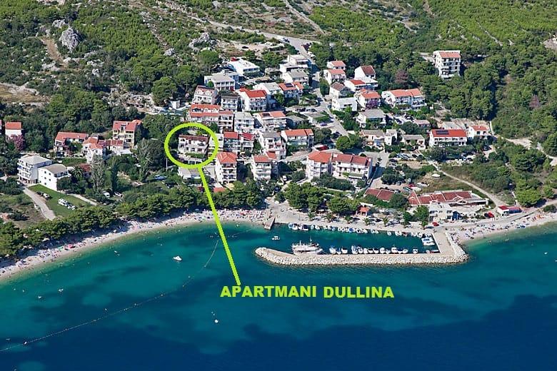 Apartmani Dullina nalaze se samo 50 metara od plaže u šarmantnom dalmatinskom mjestu Živogošće Blato, koje se nalazi 20 minuta vožnje od grada Makarske. Ovo mirno i uredno mjesto idealno je za turiste koji traže opuštanje uz more i uživanje u prirodnim ljepotama.