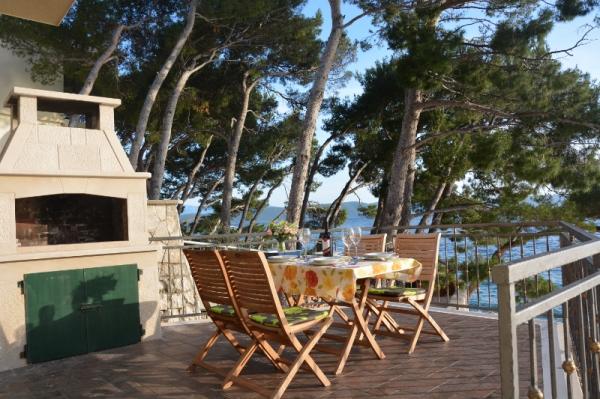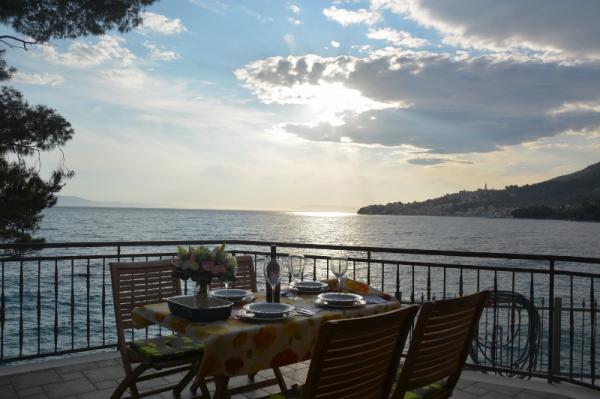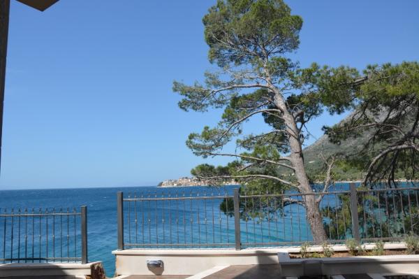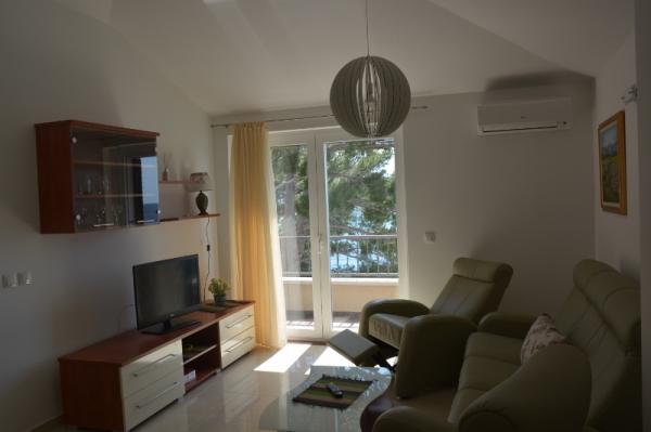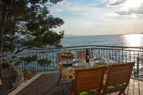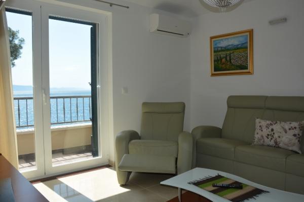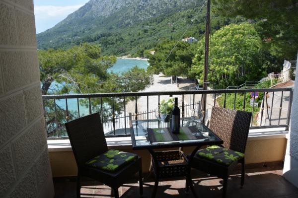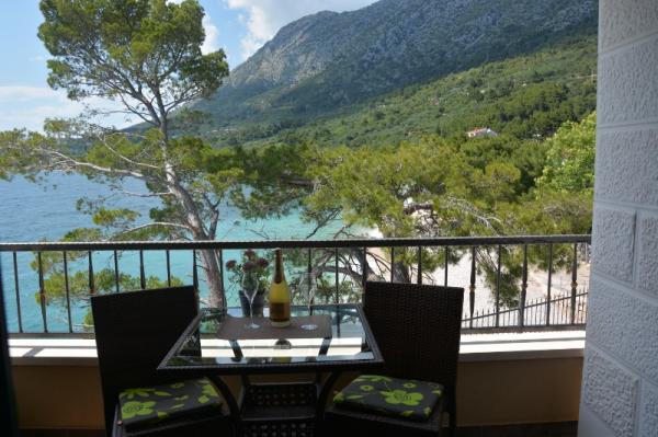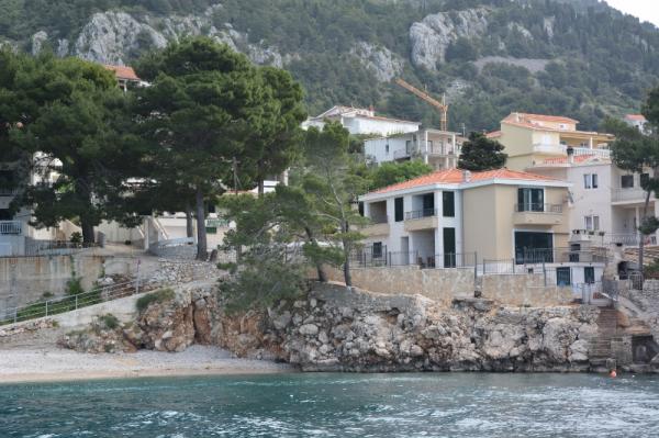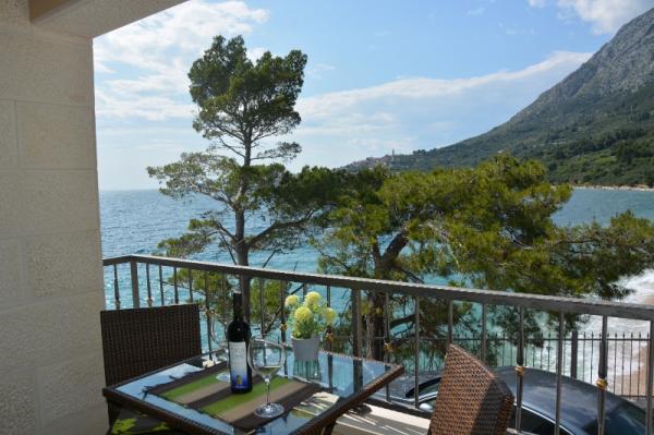 Dva vrhunska i kvalitetno opremljena apartmana na prvom katu luksuzne kuće udaljene svega nekoliko metara od mora i plaže, pružit će vam miran i božanstveni odmor. Apartmani imaju kuhinju, dnevni boravak, kupaonicu, spavaću sobu i balkone s prekrasnim pogledom na Jadransko more koji će vam oduzeti dah. Apartmani su opremljeni televizijom, wi-fi internetom, mikrovalnom, hladnjakom, krevetićom za dijete...Ispred kuće se nalazi privatan parking za goste. Centar je udaljen 3 minute hoda, dok je Makarska udaljena 20 minuta vožnje autom