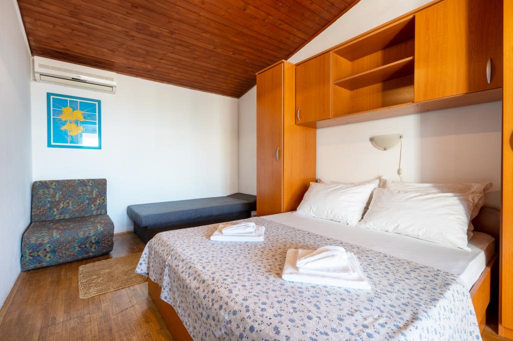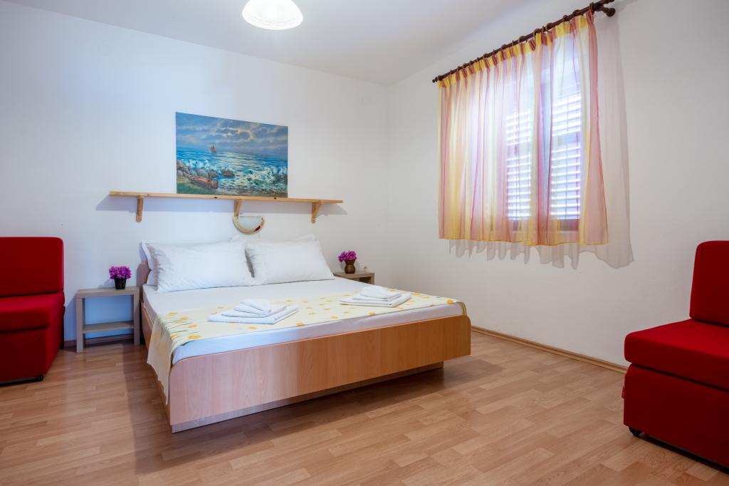 Pročitaj više Smještajne jediniceRezervacija se smatra potvrđenom nakon uplate nepovratnog depozita u iznosu 20% od ukupne cijene boravka ili minimalno 100 eura na naš bankovni račun u roku od 1-5 dana (provjerite kod nas) nakon što smo vam potvrdili rezervaciju. Ostatak se plaća u gotovini na dan dolaska. Regularne cijene se primjenjuju za boravak duži od 3 noći. Za kraći boravak cijene se uvećavaju za 30%. Boravišna pristojba je uključena u cijenu. Apartmani su na raspolaganju gostima od 14, 00 sati na dan dolaska do 10, 00 sati na dan odlaska.