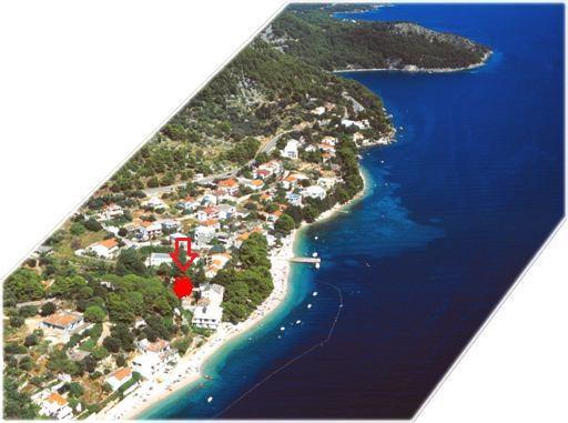 Kompletno opremljeni apartmani u kući na mirnom mjestu, drugi red do mora na samo 30m udaljenosti od plaže. Kuća se nalazi u Maloj Dubi, južno od samog Živogošća. Plaža ima dosta hladovine i idealno je za miran odmor posebno za obitelji sa malom djecom.
