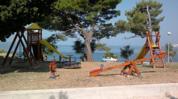 Naročito za parove s djecom. Plaže dvije, prostrane, jedna lijevo, druga desno, na nekih 100-tinjak metara. More je ispred objekta, pristojne dubine ako volite skokove prije doručka, pred spavanje, ili se volite vratiti u smještaj plivajući umjesto pješice. Prelijepa ulica, mirno, čisto. Dolazak autom jednostavan. Smještaj odličan.