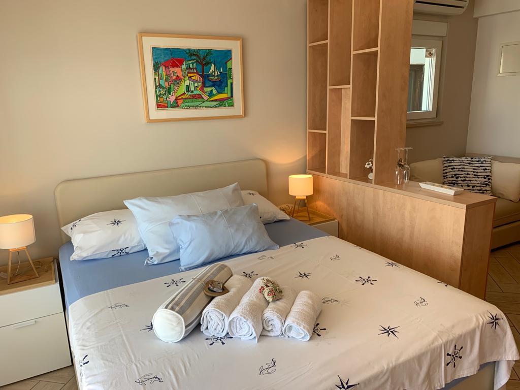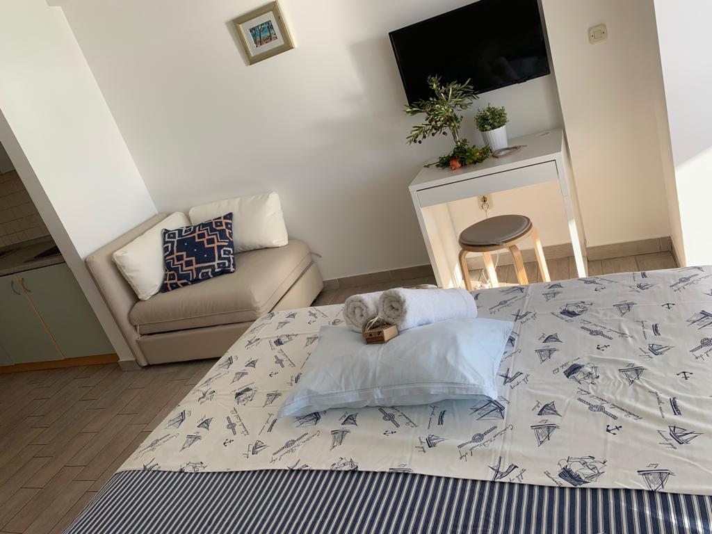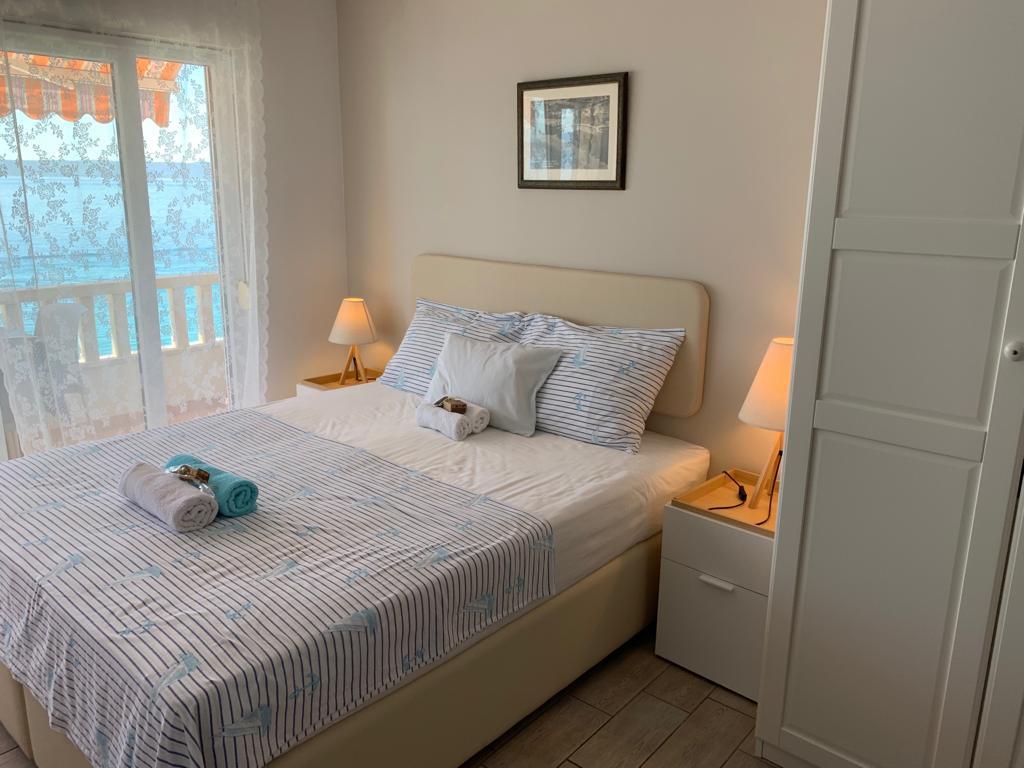 Nudimo moderno uređene studio apartmane, koji su smješteni neposredno uz more, svaki na svom katu kuće. Svi apartmani imaju balkon sa kojeg se pruža prekrasan pogled na more i okolne otoke.