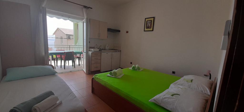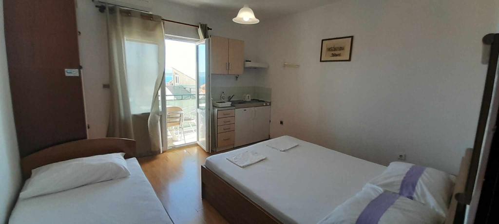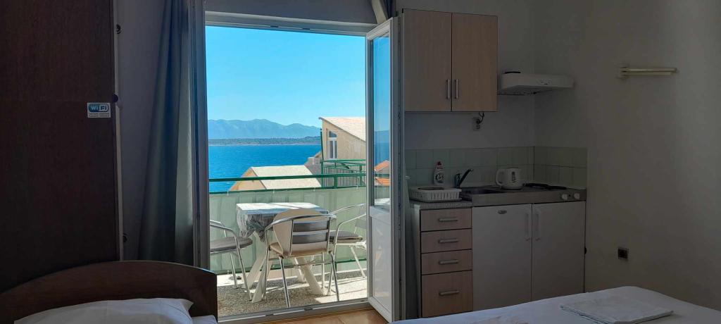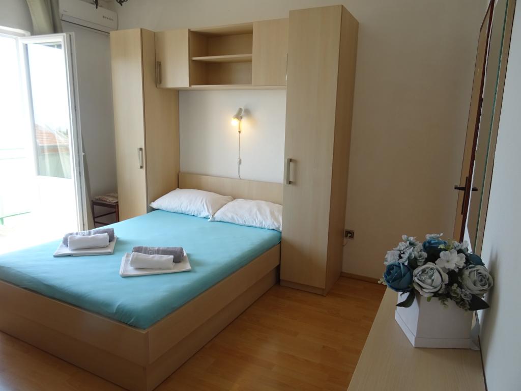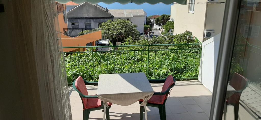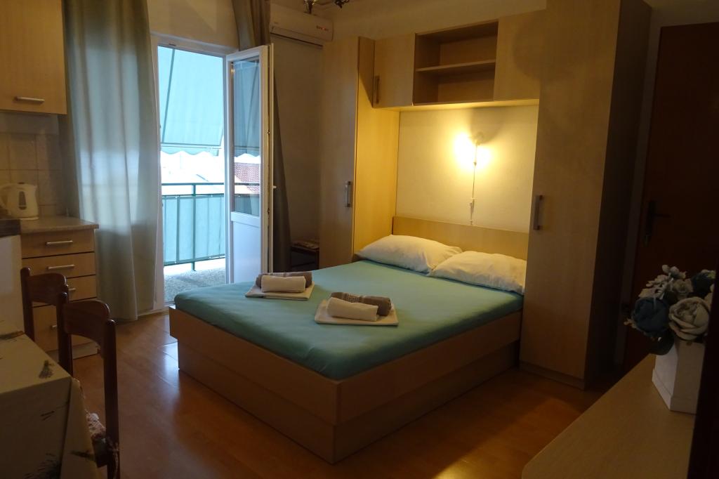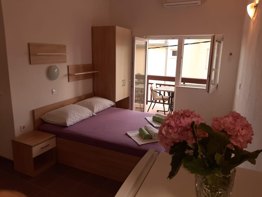 Pozdrav, domaćini su jako ljubazni i uslužni. Apartman ima balkon. Klima uređaj radi, trgovina je u blizini, a plaža je udaljena oko 10 minuta. Preporučujem.