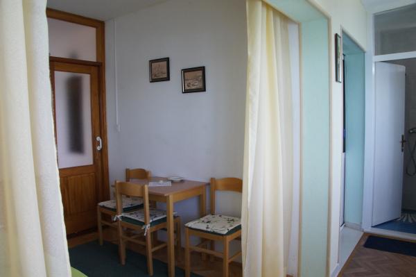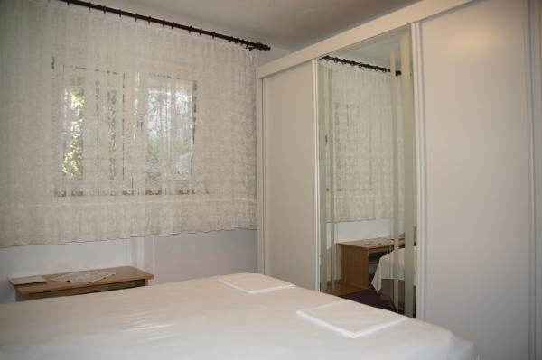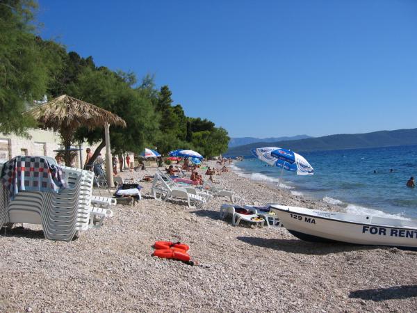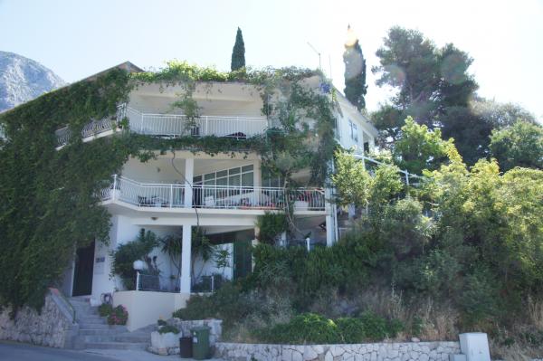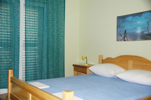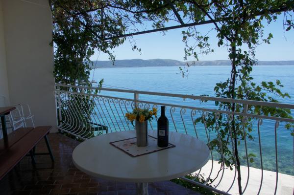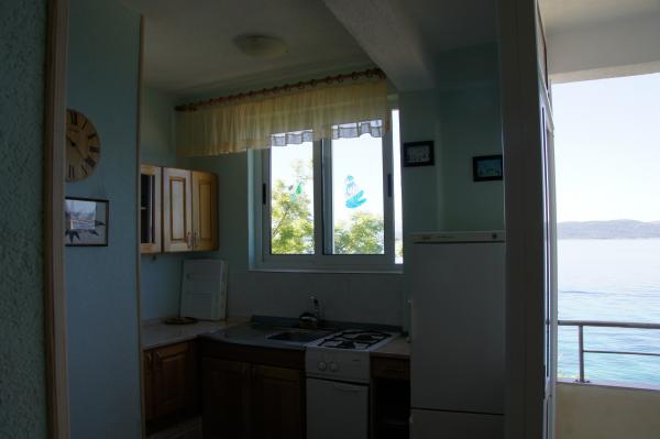 Kuća se nalazi deset metara od mora. Apartman se nalazi na drugom katu i ima krasan pogled na mora. Apartman ima 3 kupatla, 2 kuhinje, 4 spavaće sobe i dnevni boravak koji služi kao peta soba(ima vrata tako da se može zatvorit i u njemu se nalazi pomoćni ležaj za dvje osobe.) Apartman ima i veliku terasu na kojoj je stol za 10 osoba Posjeduje tv-sat,wi-fi,parking,roštilj Pogodan je za prijatelje ili veču obitelj