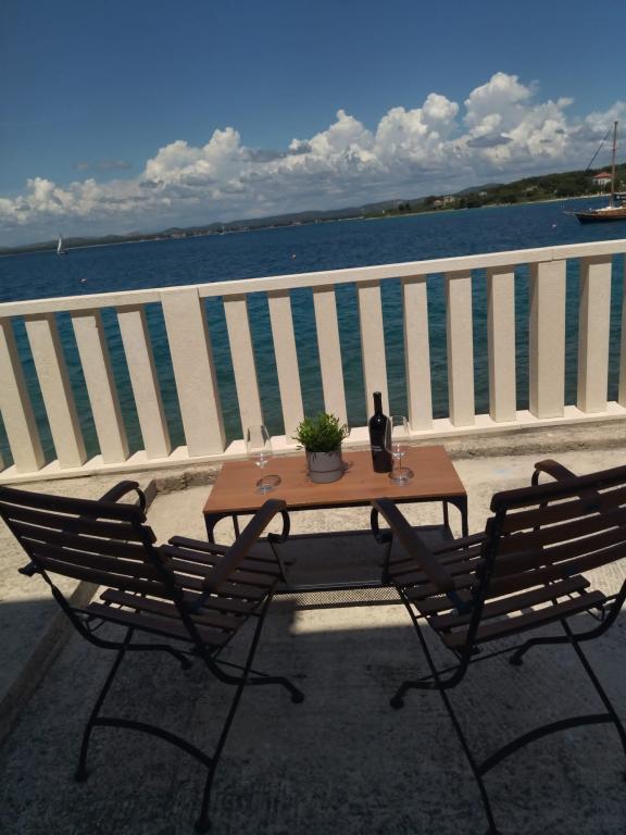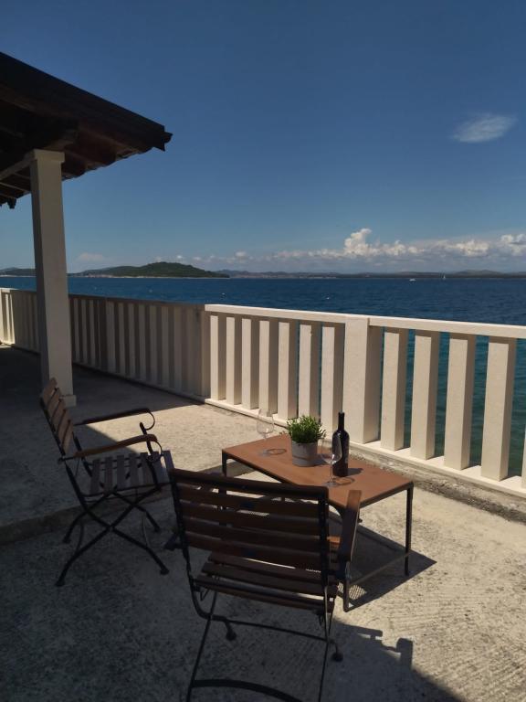 Novo moderno uređeni apartman na samom moru sa predivnom terasom i pogledom na Šibenski arhipelag. Tiha i mirna pozicija na osami u borovoj šumi sa betonskom plažom ispred kuće. Apartman se nalazi 10 min od centra mjesta Zlarin gdje se nalazi dućan, kafići i restorani. Put ispred kuće uz more vodi do mjesta.