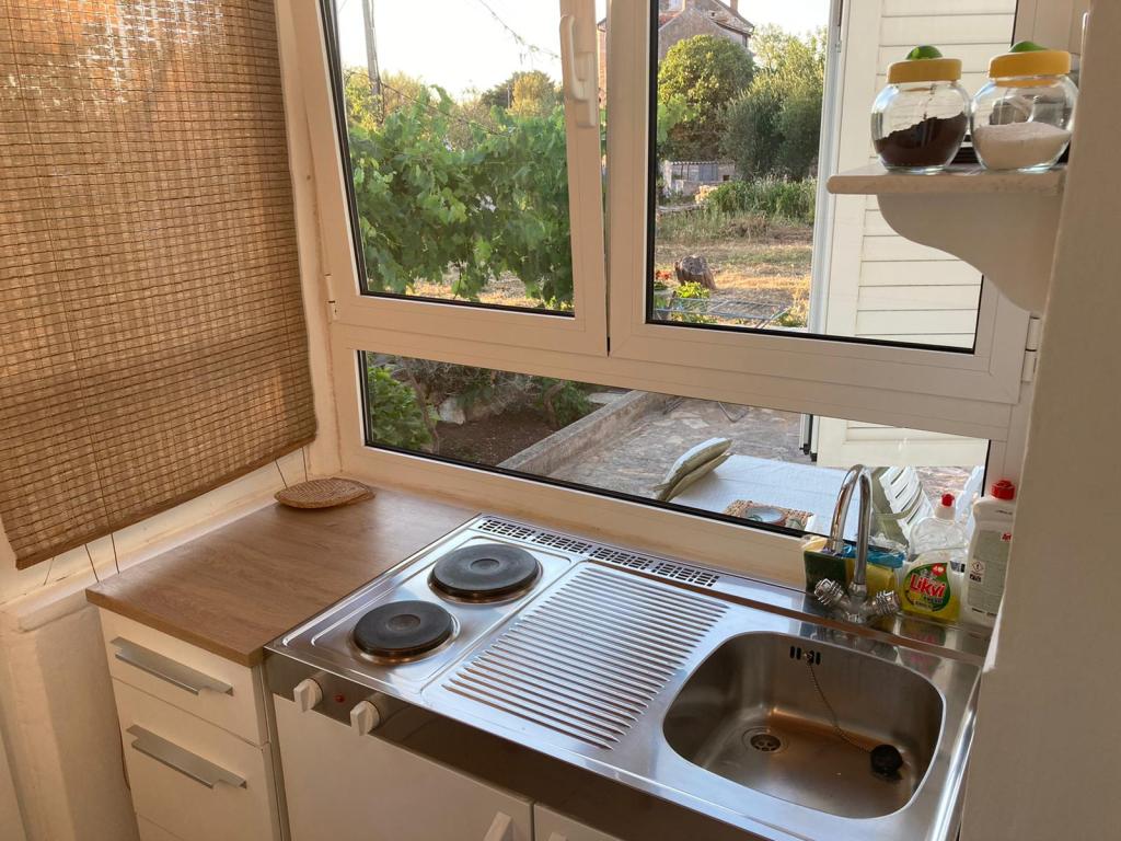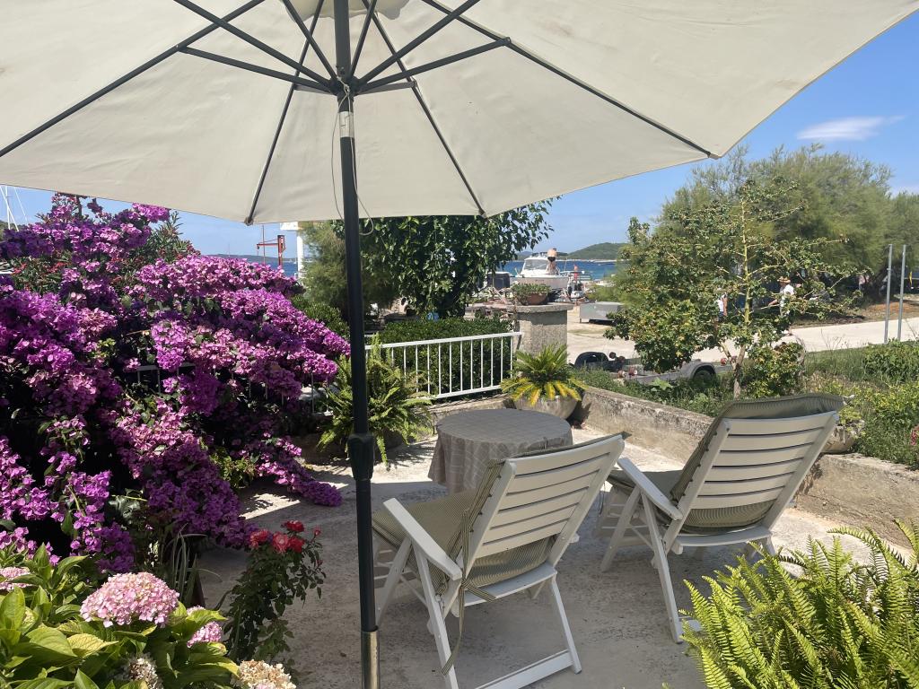 Apartman se nalazi u mirnom predjelu otoka Zlarina, na samoj obali mora, smješten prvi red do mora. Prva šljunčana plaža je udaljena svega par metara. Objekt se nalazi 5 minuta hoda do centra mjesta. Apartman ima svoju terasu s pogledom na more.