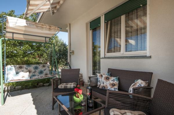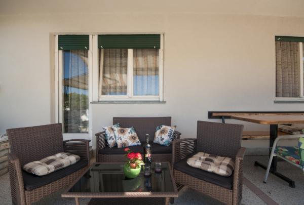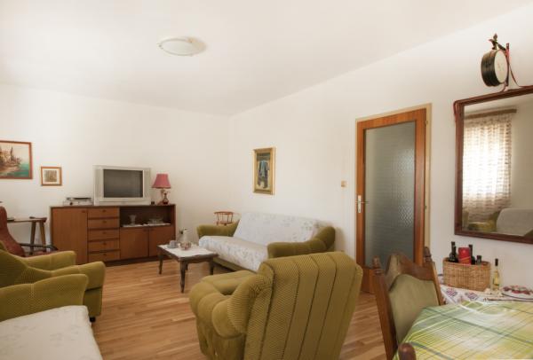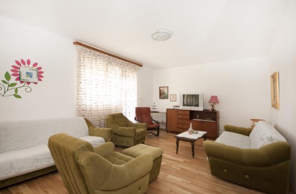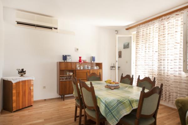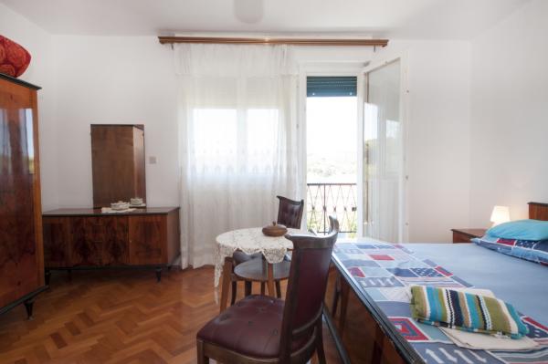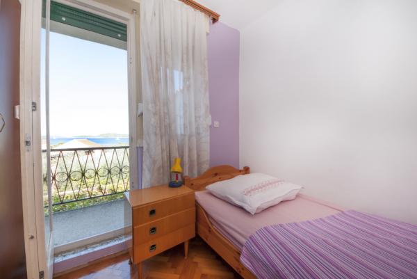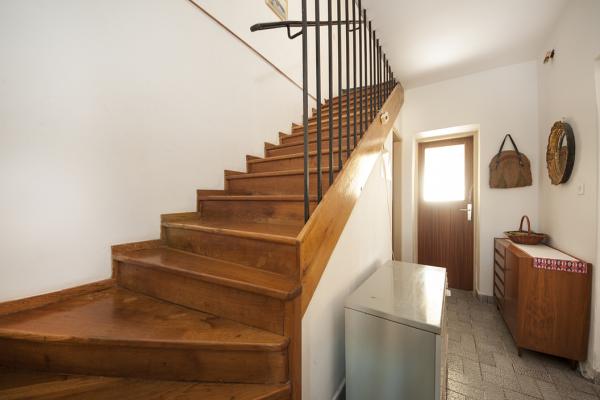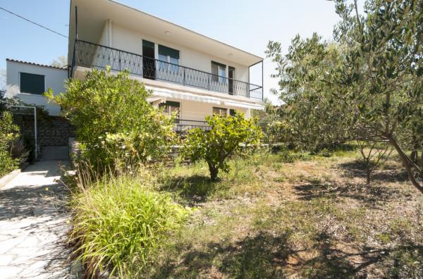 Kuća na otoku Zlarinu se nalazi na mirnom mjestu, od plaže udaljena 150 m, a od centra mjesta 400 m. Kuća je na dvije etaže okružena je posjedom od 1000 metara kvadratnih u kojem se nalazi maslinik, vinova loza, smokve.... U prizemlju se nalazi veliki dnevni boravak, kuhinja odvojena vratima od dnevnog prostora te mali wc. Iz dnevnog prostora se izlazi na veliku terasu od 35 metara kvadratnih na kojoj se nalazi ručno rađeni drveni stol za 7 osoba sa dvije klupe, ljuljačka te vrtni namještaj i ležaljka. Terasa je natkrivena tendom. Na prvom katu se nalaze tri sobe, jedna velika sa bračnim krevetom i ležajem za jednu osobu, srednja soba sa francuskim ležajem i krevetom za jednu osobu i mala soba sa krevetom za jednu osobu. Sve tri sobe imaju izlaz na veliku gornju terasu sa pogledom na more. Gornji kat kuće gdje se nalaze sobe je klimatiziran. Free WI-FI. Tu je također i kupatilo sa kadom, wc-školjkom i umivaonikom. U sklopu kuće se nalazi vanjski tuš na solarno sa hladnom i toplom vodom.