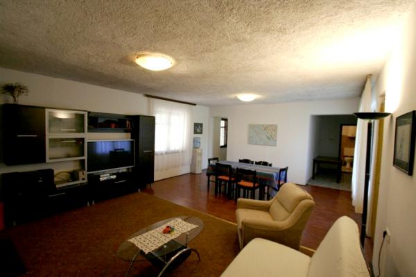 Apartman u privatnoj kući u mjestu Žman na Dugom otoku, Apartman ima 105 m2 velika natkrivena terasa. Sastoji se: veliki dnevni boravak s blagovaonicom, opremljena kuhinja ostava, hodnik, tri spavaće sobe od kojih dvije imaju vlastita kupatila, glavno kupatilo u koje se ulazi s hodnika, ležaji 6 2 Kuća je smještena na kraju mirne ulice, te je okružena zelenilom Pokraj kuće su parkirna mjesta za više automobila. Kuća je opremljena za cjelogodišnji boravak.