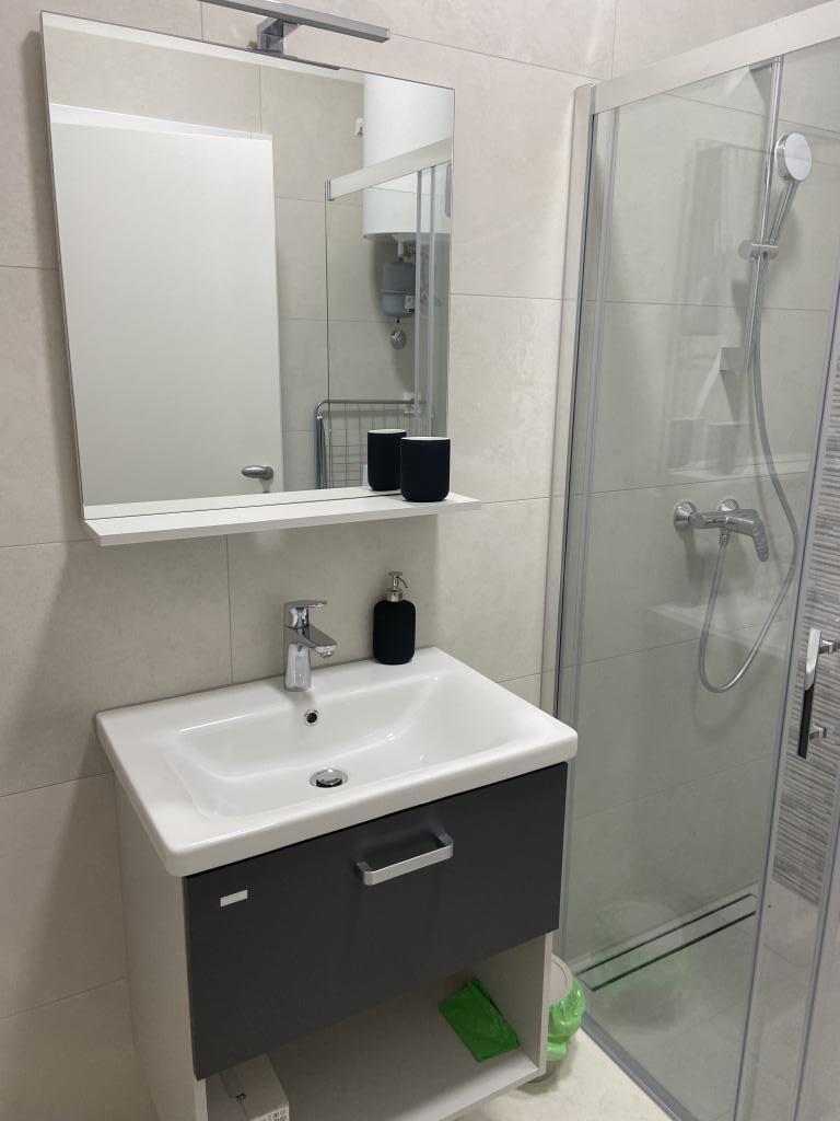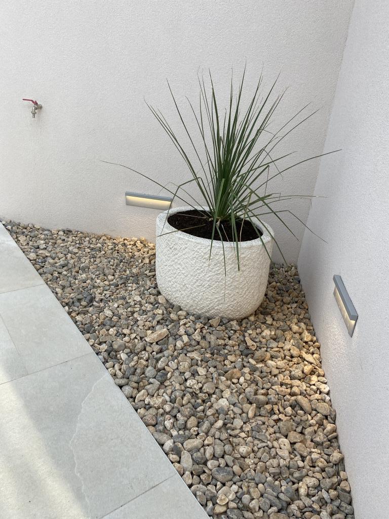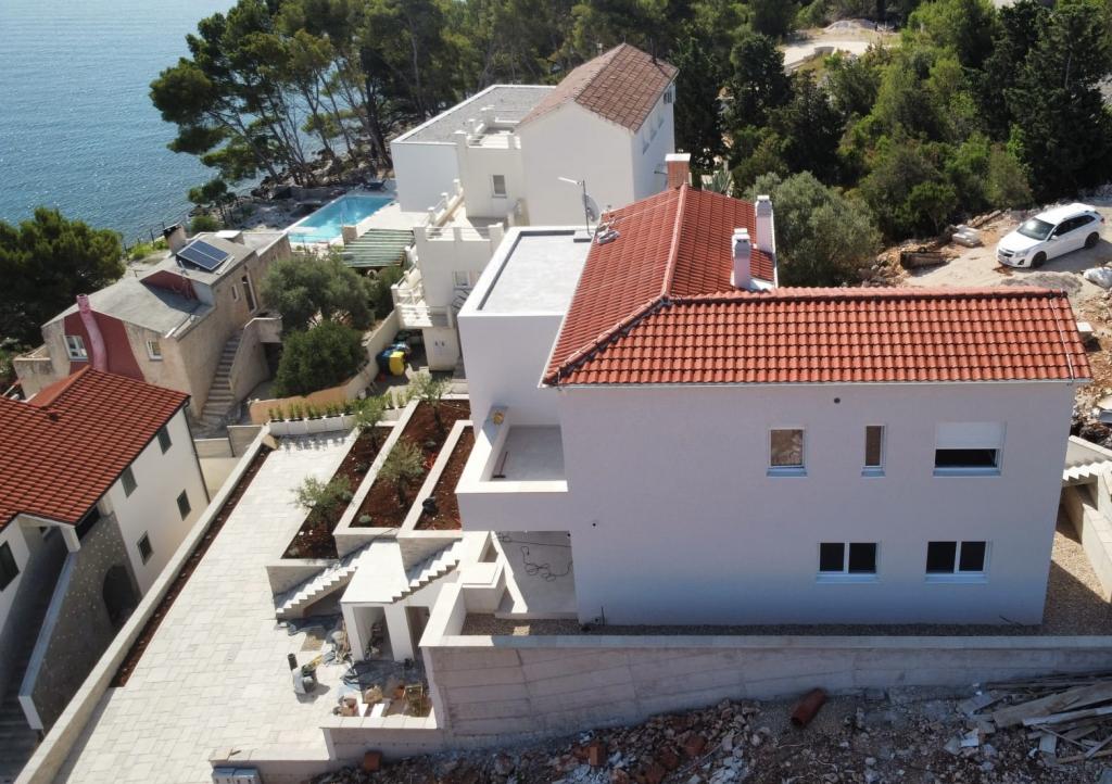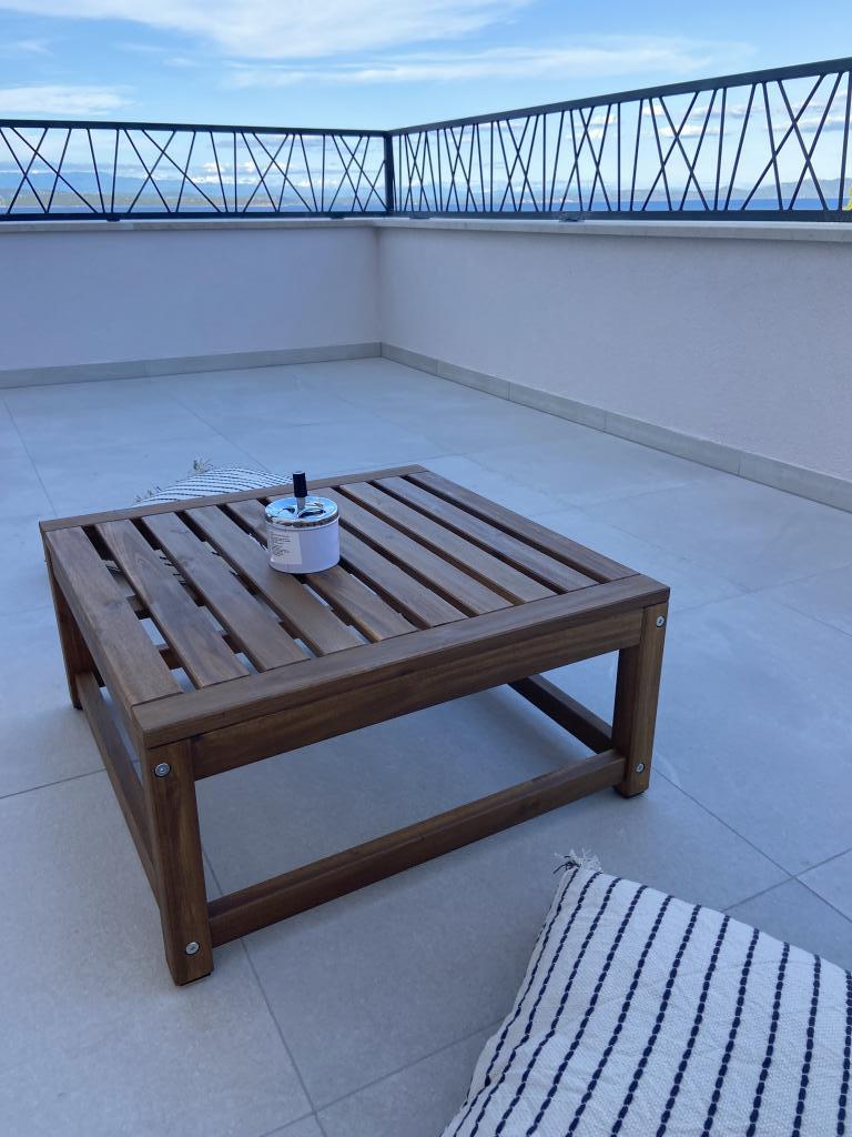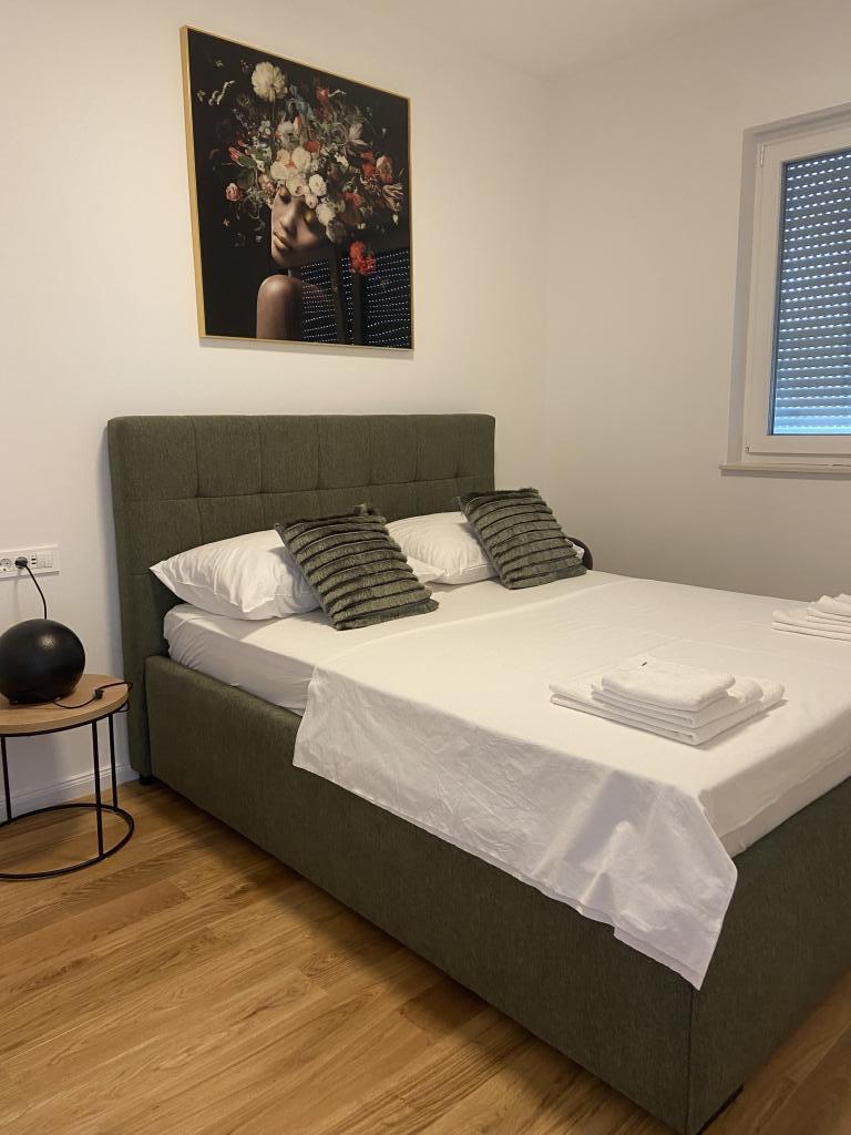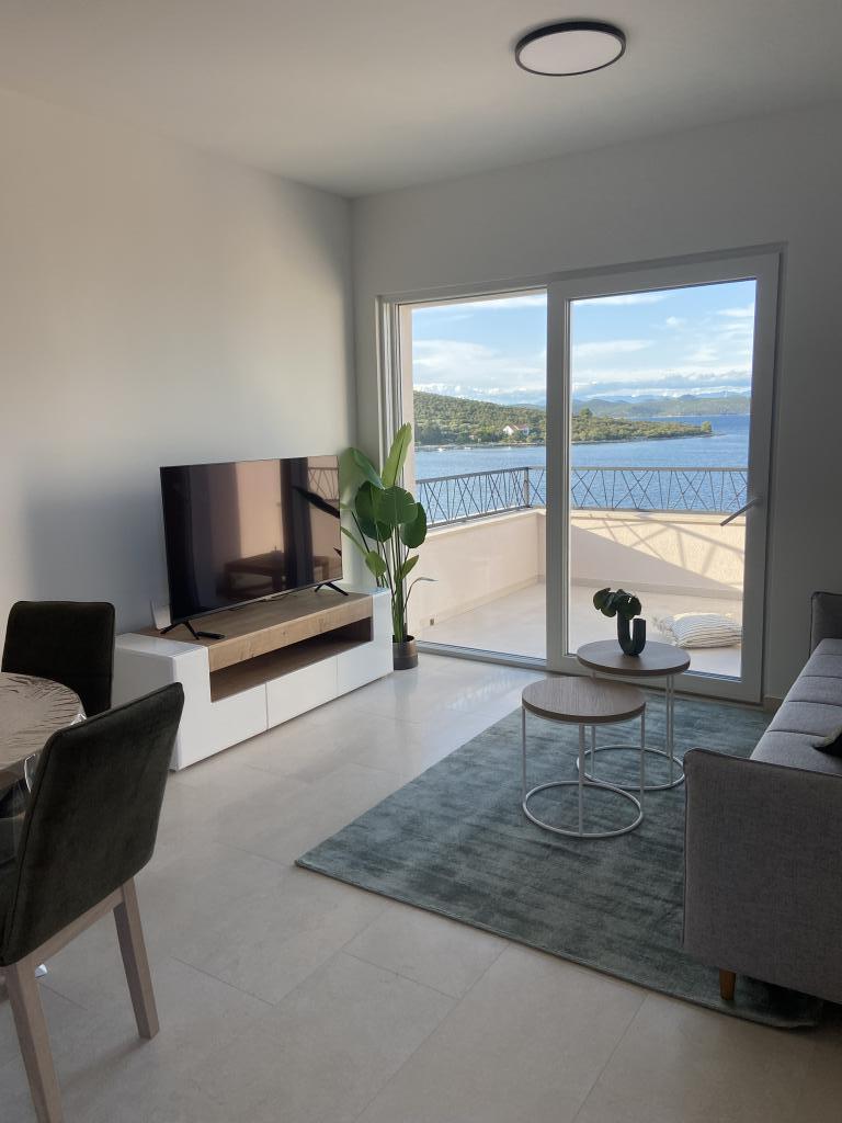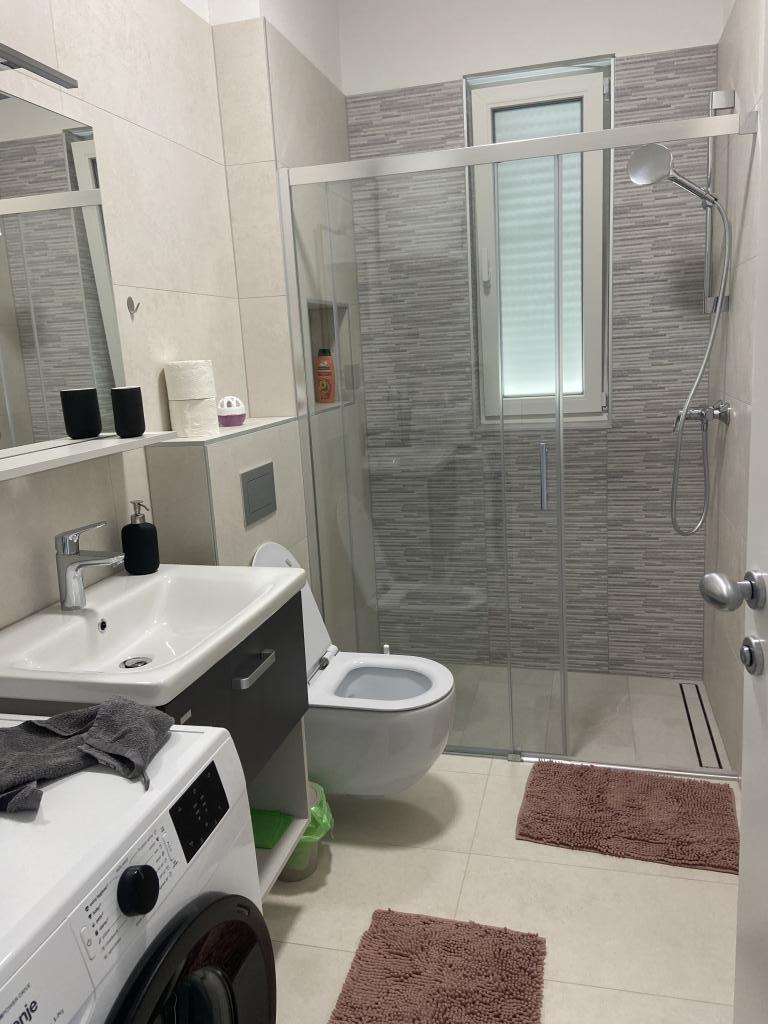 Apartman je moderno uređen. Ima vlastitu perilicu rublja i posuđa. Udaljenost od mora je 50 metara. Ima prekrasan pogled na more, otoke i Velebit. Besplatan privatni parkig do kojeg se dolazi dijelom po bijelom putu. Voda je iz gusterne i nije za piće. Osvjetljenje cijele okućnice.