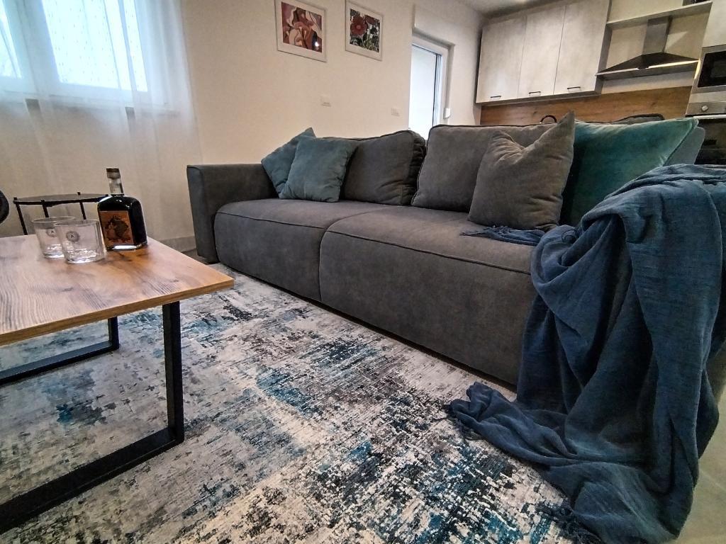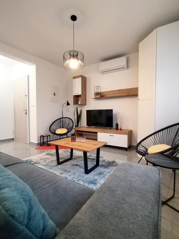Apartman se nalazi u prizemlju zgrade od 3 kata. U apartmanu su dostupni: - začini (sol, papar), ulje i ocat, kava i čaj, mlijeko, svježe voće i povrće - Wc papir, šampon za kosu, sapun za ruke, tablete za perilicu rublja - Kuhinjski ubrusi, tablete za perilicu suđa, sredstva za čišćenje, spužva i krpe - Svježa posteljina i ručnici - Klima uređaj na grijanje i hlađenje u svakoj prostoriji za maksimalnu udobnost - Besplatan Wi-Fi - Besplatan privatni parking odmah ispred zgrade - Blizina dječjeg igrališta - trgovački centar Plodine na 5 minuta hoda u Žminju su dostupni brojni OPG-ovi za kupnju domaćih mliječnih proizvoda, suhomesnatih proizvoda, meda, sladoleda i kolača. Također ima i nekoliko avanturističkih aktivnosti poput tura s quadovima, paintball, biciklističke staze, hranjenje životinja..