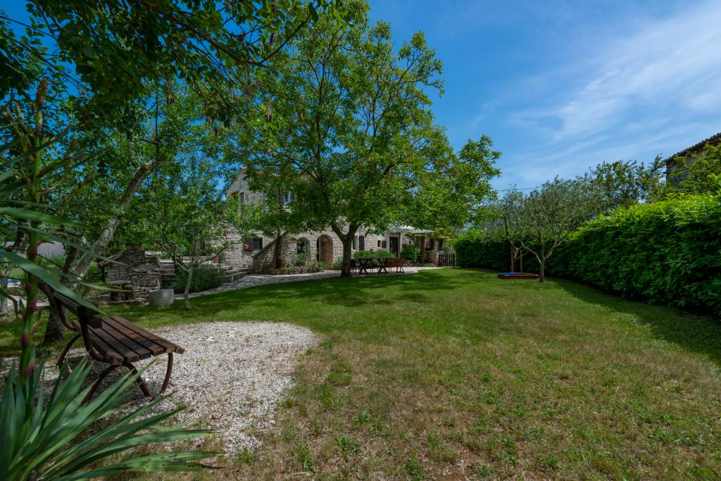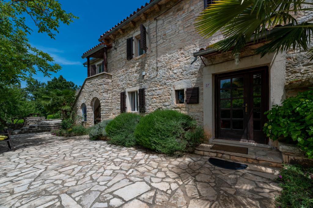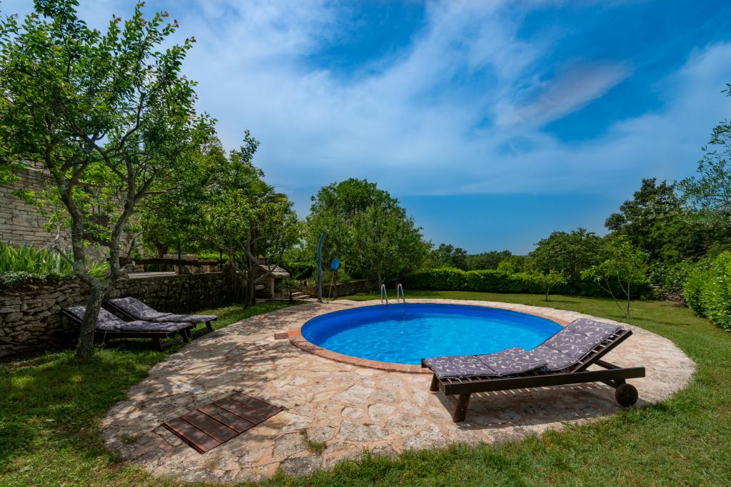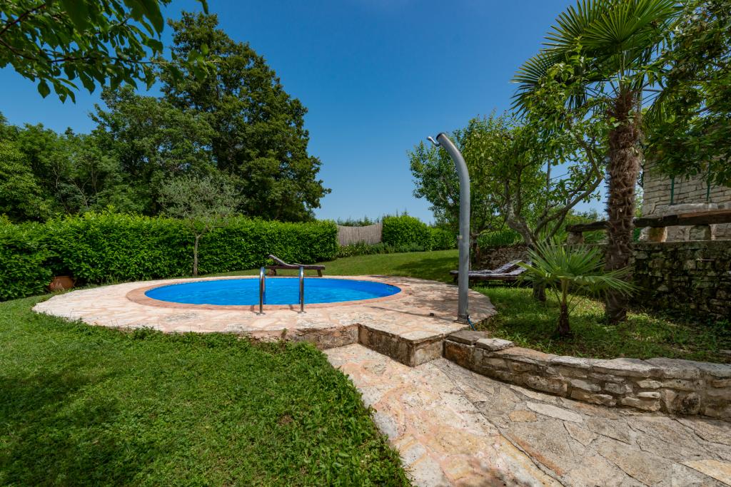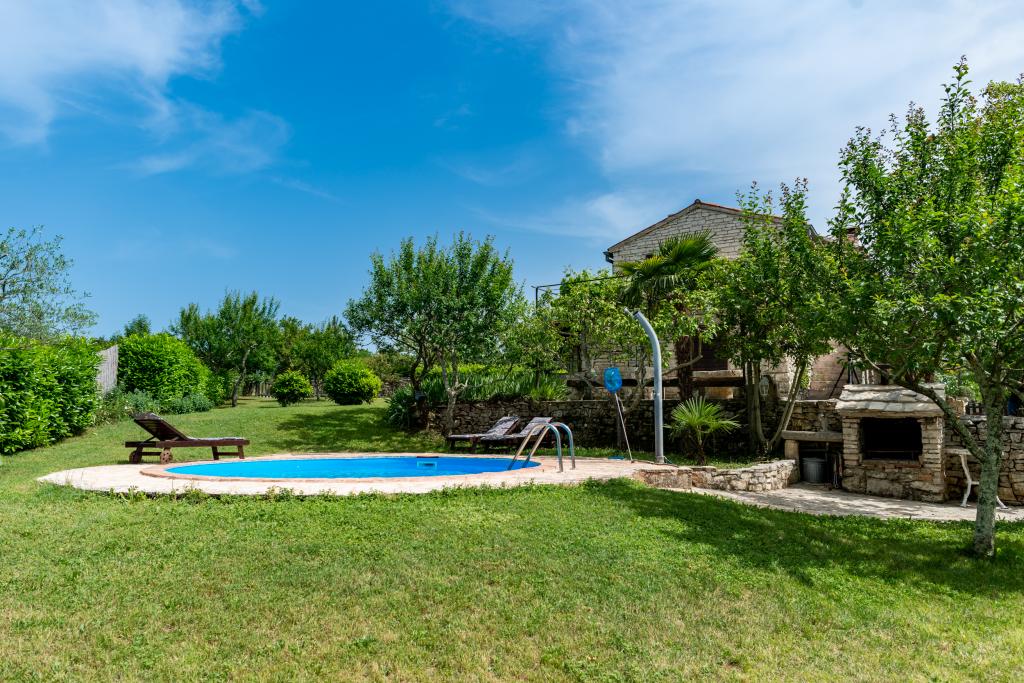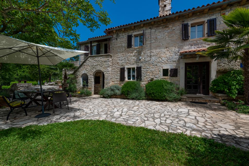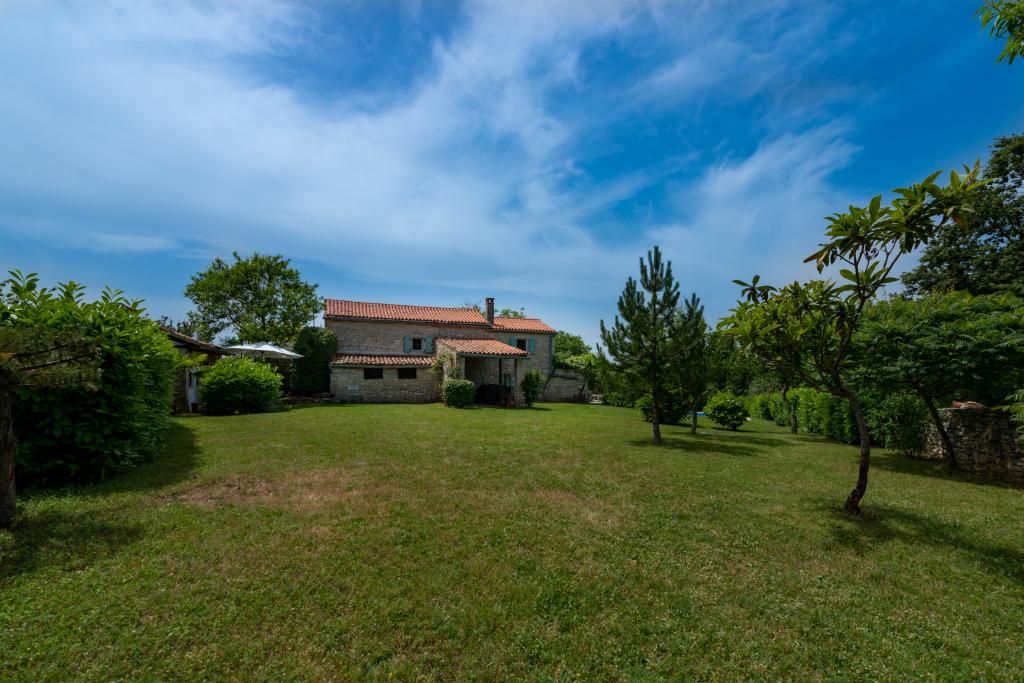 Stara, rustikalno uređena kamena kuća u istarskom stilu iz 1850. godine, renovirana, okružena livadama, poljima i šumom. Izolirano, mirno i sunčano mjesto u zelenom. Trgovina 3 km, restoran 3 km. Žminj, 4km, Bele (plaža) 18km, Rovinj (more, plaže, sportski sadržaji) 20km. Za samostalno korištenje, ograđena parcela od 1600m2 s livadama i drvećem. Vanjski tuš, vrtna garnitura za sjedenje. Okrugli bazen (promjer 5 m, dubina 120cm. Vanjski roštilj. Na raspolaganju internet WIfi, dječji krevetić, hranilica, perilica suđa. Parking uz kuću na parceli. Perilica rublja - uz doplatu 10Eur /dan Prizemlje/dnevni boravak/blagovaona s otvorenim kaminom, sat/TV, DVD i muzičkom linijom. Kuhinja (štednjak za kuhanje, pećnica, perilica za suđe). Tuš/WC. Unutarnje stepenice za 1. kat: 1. soba s dva kreveta za jednu osobu, druga soba s bračnim krevetom i treća soba s francuskim ležajem i izlazom na terasu i posebnim izlazom na vrt.