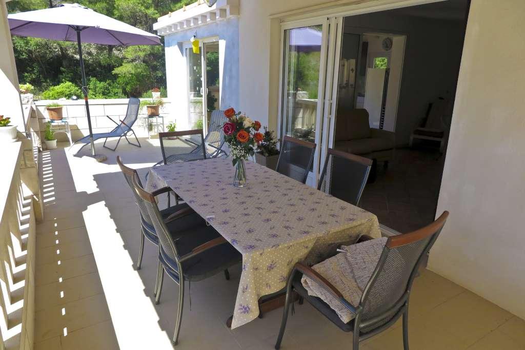KUĆA “MAJA” ZA ODMOR DUŠE I TIJELA nalazi se u uvali Bratinja luka, udaljenoj 8 km makadamskom cestom od naselja Žrnovo, otok KORČULA. Parking se nalazi 100 metara od kuće. Nudimo dva apartmana, jedan za 4 osobe (donji nivo) i drugi iznad za 4 1 osobu. U uvali nema turističkih sadržaja, nema restorana, trgovine se nalaze od 8 do 12 km udaljenosti, osim izvrsnog seoskog domaćinstva s domaćom hranom udaljenom 5 km od uvale, na putu prema Žrnovu. Radi blizine mora i blage šljunčane plaže, kuća je posebno interesantna za obitelji s djecom predškolske dobi, a za one koji traže samoću i mir u mjesecima svibnju, lipnju, rujnu i listopadu. S obzirom na to da nudimo polu-Robinzonski način turizma treba naglasit potrebu za štednjom vode i da je potrošnja električne energije ograničena !