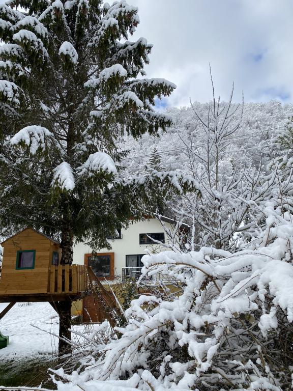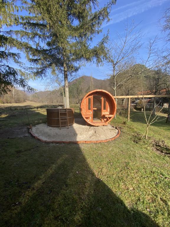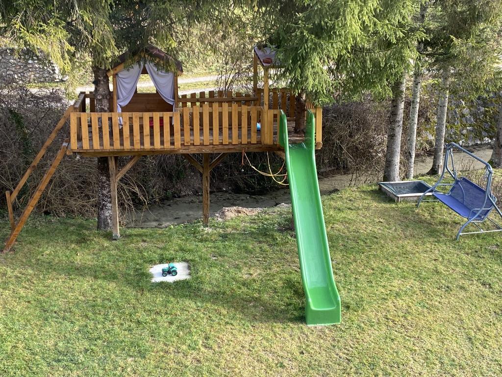 Kuća je udobna i ima sve što vam je potrebno za gradski odmor u prirodi, uključujući veliki vanjski prostor s bazenom, vanjski wellness, roštilj, kućicu na drvetu i prostor za sjedenje.