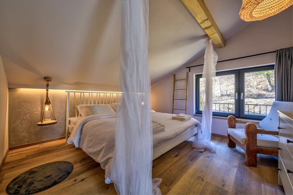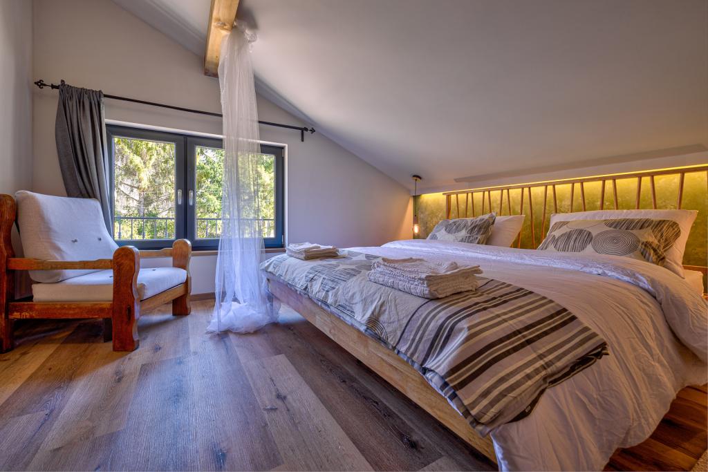 Prekrasno obnovljena kuća, s lijepom okućnicom smještena na rubu šume pruža savršen bijeg za sve koji žele pravi odmor i opuštanje. Kuća je dovoljno komotna za dvije obitelji (mi smo bili s 4 djece), do detalja promišljena da vam pruzi sve sto vam je potrebno. Okućnica s velikim roštiljem i lounge je natkriven pa se može uživati u vanjskom prostoru i kada je kišovito. Koristili smo i saunu te bačvu s toplom vodom i to je zaista bilo jedno novo iskustvo. Vlasnici su na usluzi ako nešto zatrebate.
