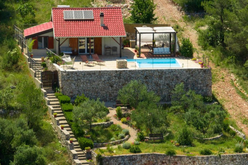 Ova mala neodoljiva kuća nalazi se u selu Bilice Vrulje, samo 15 min vožnje od centra Šibenika, ali dovoljno daleko od gradske buke i vreve. Lokacija čini ovu kućicu savršenim izborom za one koji trebaju mir i odmor u prirodi. A osim lokacije oduševit će vas i eksterijer ove šarmantne male vile, ali i njezin bajkoviti pomno uređeni interijer. Kuća se sastoji od kuhinje/blagovaone, dnevnog boravka, kupaone, spavaće sobe, te spavaone na galeriji. Vanjski prostor prostire se na 100 m2; terasa s panoramskim pogledom idealno je mjesto za uživanje u zalascima sunca ili osvježenje u bazenu. Osim toga na raspolaganju vam je i pergola u kojoj se možete zakloniti od sunca i uživati u jelima pripremljenima na roštilju. A samo 5 min šetnje udaljena je privatna plaža u hladovini borove šume. Na plaži se nalazi drveno spremište u koje možete spremiti svoje stvari dok uživate u kupanju ili veslanju u kajaku ili sup-u koji su vam također na raspolaganju. Do plaže se može doći i autom.