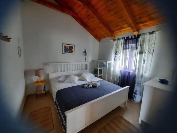 Ako želite odmor bez automobila, turističke gužve, blagodati civilizacije i infrastrukture onda je ovo je pravi izbor za vas. Kuća se nalazi na južnoj strani otoka Pašmana u Uvali Čerene s pogledom na Nacionalni park Kornati. Nudi solarnu energiju i tekuću vodu iz spremnika s kojom se treba ophoditi štedljivo. APARTMAN 1 Dvije spavaće sobe s ukupno 6 ležajeva, kupaona, kuhinja, blagavaona, dnevni boravak, terasa. APARTMAN 2 Dvije spavaće sobe s ukupno 4 ležajeva, kupaona, kuhinja, blagavaona, dnevni boravak s kaučem na razvlačenje za dvije osobe, terasa i vanjski roštilj. Izvan kuće nalazi se solarni tuš i roštilj. Do kuće se dolazi putem koji je na nekim dijelovima makadam. Na zahtijev gosta moguće je organizirati prijevoz do objekta. Objekt se iznajmljuje u cijelosti. U terminu od 06.09.2022. moguć je najam samo jednog apartmana za maksimalno 6 osoba ( 4 + 2) uz umanjenu cijenu. U slučaju najma jednog apartmana drugi se ne iznajmljuje tako da gosti imaju svoju privatnost.