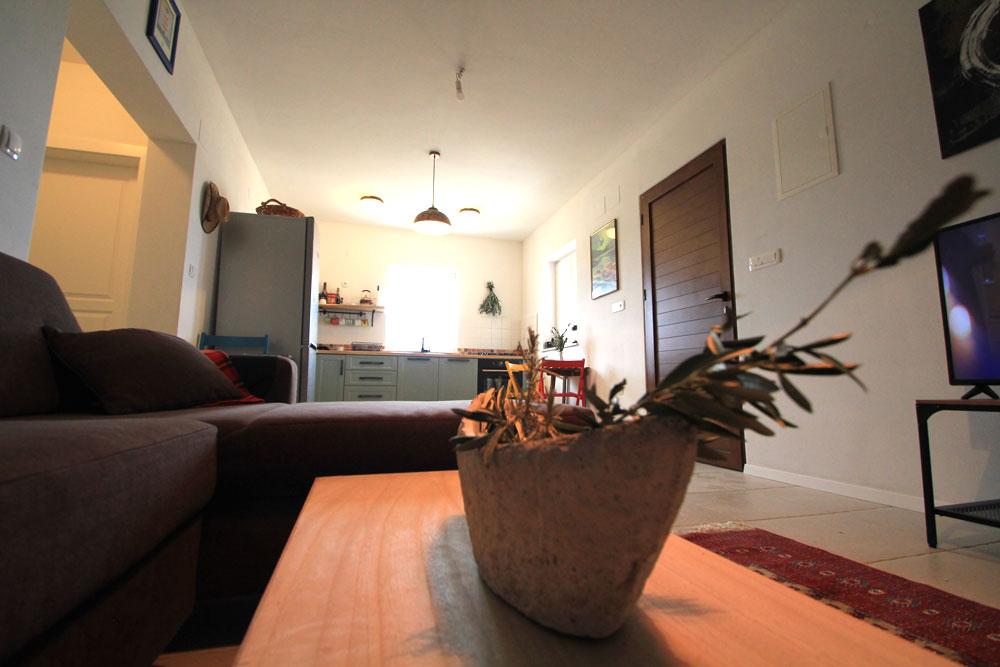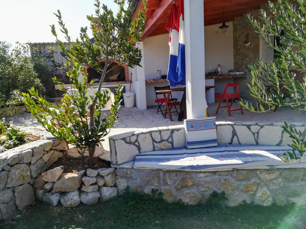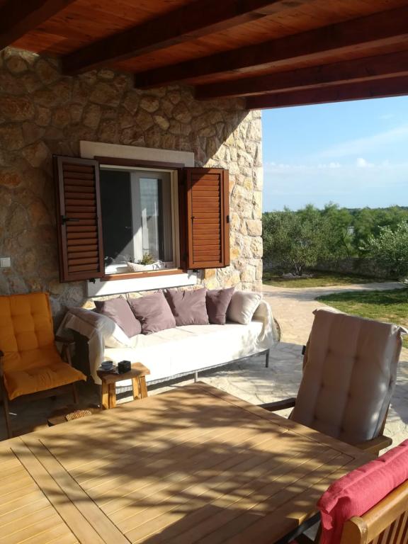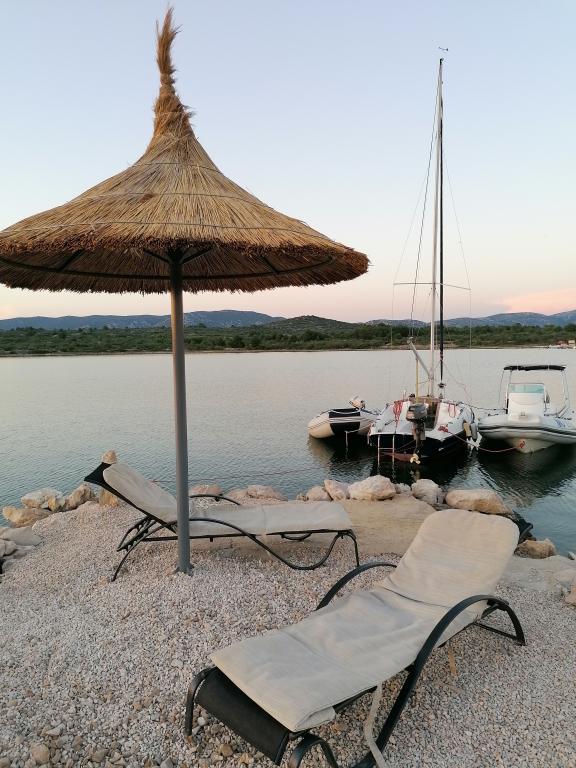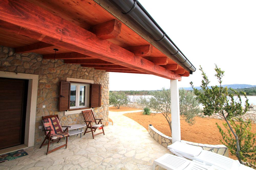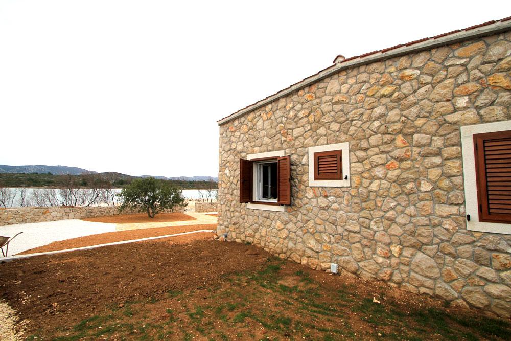 Nova kamena kuća s dvorištem u mirnoj uvali. Opremljena je za ugodan boravak i odmor obitelji s djecom i kućnim ljubimcima. Ima dvije spavaće sobe, dnevni boravak, kuhinju s blagovaonicom, kupaonicu i veliku natkrivenu terasu s vanjskom kuhinjom. U svakoj sobi je bračni krevet veličine 200x160 cm. U dnevnoj sobi je kutni ležaj veličine 200x150 cm. Ispred kuće je plaža i privezno mjesto za manje brodice. . Za djecu su pripremljene igračke. Dolazak do kuće je makadamskim putem 1, 5 km. More, Park prirode Vransko jezero i Nacionalni park Kornati nude mogućnost jedrenja, surfanja, izleta, vožnje biciklima. Idealno mjesto za sve ljubitelje prirode, mira, slobode i svega vezanog uz more koji žele provesti kvalitetan, zanimljiv i aktivan odmor.