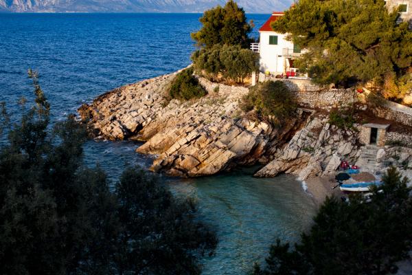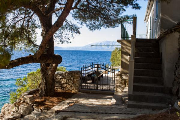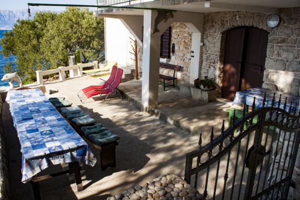 Kuća za smještaj u robinzonskom stilu, nalazi se u mirnoj uvali Pakomina na sjevernoj strani otoka Hvara i pripada mjestu Gdinj. Kuća je smještena odmah iznad čiste šljunkovite plaže na 10 m udljenosti, a imate i privatnu rivu za kupanje. Pogled sa terase koja ima prirodni hlad od ogromnog bora, je predivan, vidite more i plažu, a na pučini otok Brač i planinu Biokovo. U uvali se nalaze samo tri kuće, u jednij od njih je obiteljski restoran koji nudi veliki izbor ribe i domaćih specijaliteta i možete dobiti po želji jelo ili polupansion. Za smještaj vam nudimo kompletnu kuću na dvije etaže. U prizemlju se nalazi ogromna terasa s grilom, konoba, kuhinja s plinskim kuhalom, dva frižidera (jedan elektro a drugi plinski) i dnevni boravak (s krevetom) te WC. Na katu su tri sobe sa 7 ležajeva i kupatilo, te izlaskom na terasu. Od većih gradova otoka udaljeni smo sat vožnje. Nudimo internet, uključeno u cijenu i TV (domaći programi). Parking mjesto je osigurano, kao i vez za brod.