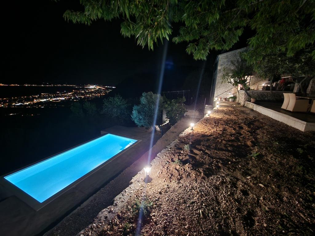 Uživajte u fantastičnim pogledima iz ove stoljetne kamene kuće smještene na 6000m2 privatnog posjeda i na 250m nadmorske visine. Kuća se nalazi na kraju makadamske ceste 250 m nadmorske visine i nalazi se na zemljištu površine 6000 m2. Potpuno je izvan mreže i ekološki prihvatljiv sa svojim solarnim sustavom, kolekcionarom za vodu, bio septičkom jamom. 1. kat se sastoji od kuhinje otvorenog tipa, blagovaonice i dnevnog boravka, na 2. katu se nalaze 2 spavaće sobe s 160X200 krevetima i kupaonica. Vanjski prostor ima nekoliko terasa, ogroman prostor za roštilj, bazen od 50 m2 s elektrolizom, voće, stabla badema i maslina te mali vinograd u izradi. Kuća je visoko u brdima, a dio ceste nije popločan. Bilo koja vrsta automobila može se popeti, ali vam zaista ne savjetujemo da tamo uzmete sportski automobil;) Kuća se napaja solarnim panelima ikoristi vodu iz bunara, tako da treba voditi računa o potrošnji.