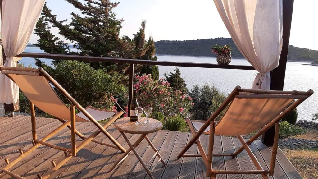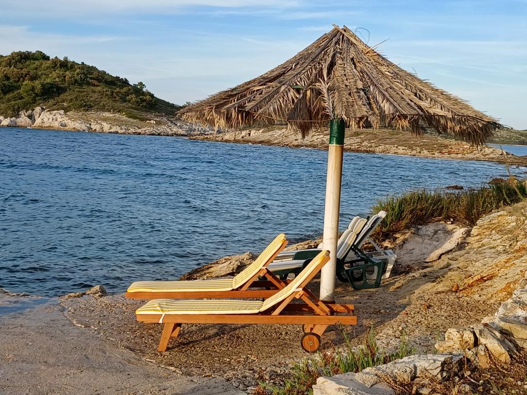Kuća za odmor Neda nalazi se na kornatskom arhipelagu, otočić Brušnjak. Kuća sadrži 2 spavaće sobe (bračni krevet), blagavaona (pomoćni ležaj), kuhinja, kupatilo wc. Ispred kuće je terasa s prekrasnim pogledom na more. Nalazi se na osamljenom mjestu 10 m od mora, imate svoju plažu i vez za čamac. Udaljenost do marine Žut je cca 30 min malim čamcem gdje ima market i restoran. Struja u kući je solarna 220V. Javnog prijevoza nema, polazak je iz Murtera,s našim brzim brodom. Transfer je uračunat u cijenu kuće. Parking za vaš auto osigurano je kod nas i uključen je u cijeni.