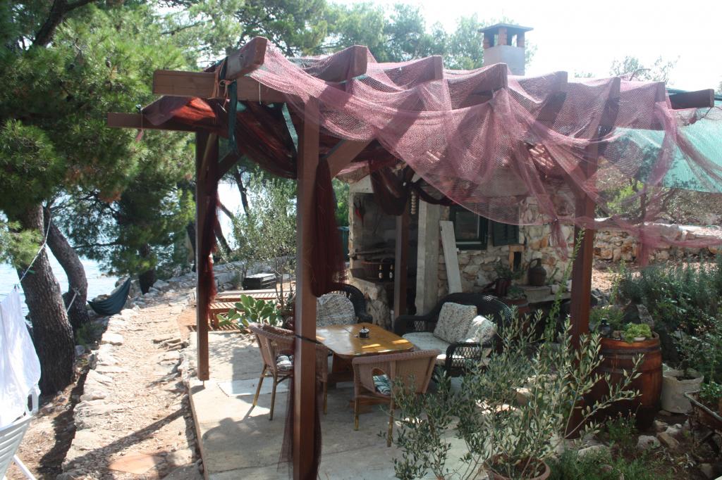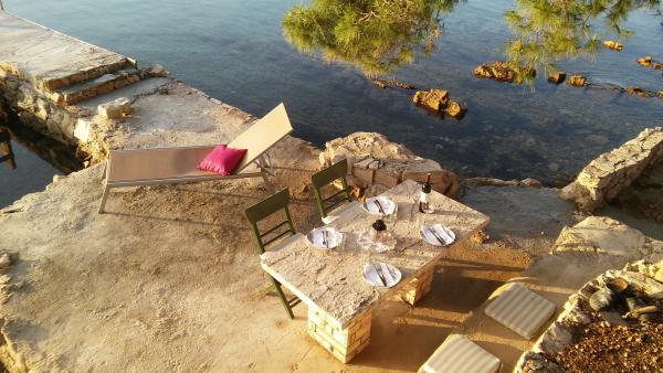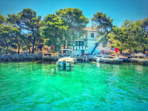 Nudimo vam smještaj u tradicionalnoj, ribarskoj kućici na privatnom otoku, udaljenoj od glavnog otoka Ugljana svega 800 metar, od mora 2 m, s vlastitom rivom za vezanje, 4 terase za sunčanje i odmor, te unutarnjim i vanjskim kominom, unutrašnjim i vanjskim tušem. Pristup kućici je moguće jedino brodom. To je mala ali komforna ribarska kuća u dvojnom objektu na samoj obali te jedina dvojna kuća na cijelom otoku. Uvjeti su gotovo Robinzonski, uz određenu udobnost na raspolaganju, kao što su električna energija preko sunca, koja pokreće hladnjak, televiziju, pruža osvjetljenje u kući i daje punjenje elektroničkim uređajima jer je napon u cijeloj kući 220 volti. Kuća ima i internet. Atraktivna je za one koje vole osamu i boravak u prirodi. Uživajte u kamenoj kući u sjeni bora, pokraj plavog mora, zalasku sunca, moru, ribolovu i svim prirodnim ljepotama malog otoka. Odmaknite se od ostatka svijeta i opustite sva čula u netaknutoj prirod.