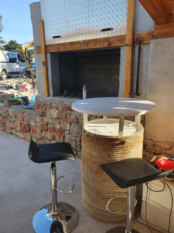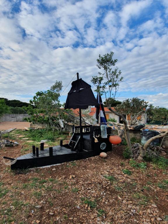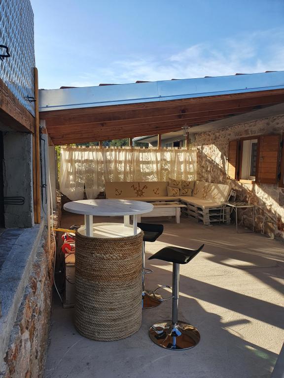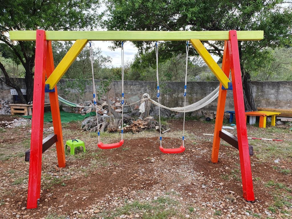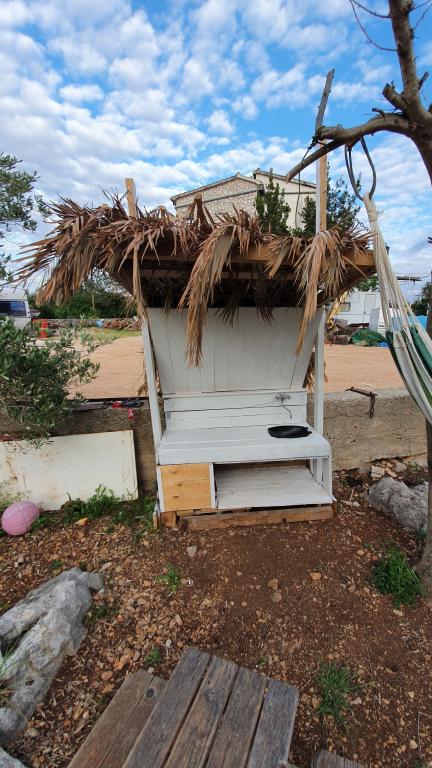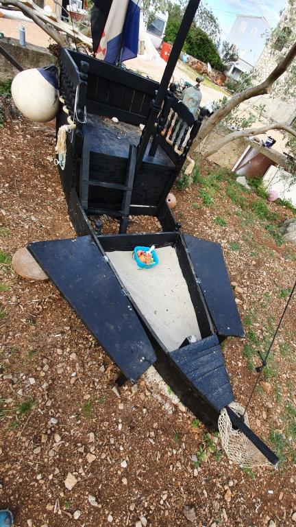 Nova ribarska kućica za odmor na otoku Murteru. Kućica se nalazi na nekoliko minuta hoda do plaže Pod Vrške i plaže Luke . Plaža Slanica je 10 min. hoda udaljena od objekta. Kućica se sastoji od dvije spavaće sobe. Jedna bračna soba s krevetom 160 x 200 , te manja soba sa krevetom 80x200 koji se može rastegnuti do 160x200 za dvoje odrasle osobe ili dvoje djece . Dvije kupaone of čega jedna sa umivaonikom, wc i perilicom rublja.te druga kupaona s wc , umivaonikom i velikom tuš kabinom 90 x 120 . Dnevni boravak s kutnom garniturom. Blagavaona s stolom za 4 osobe ( po potrebi imamo I stolicu za malo dijete). Kuhinja je opremljena sa pločom za kuhanje , pećnicom, kuhala za vodu, aparat za kavu i dolche gusto . Privatan parking ispred apartmana s pristupom za invalide . Na terasi od 60 m2 nalazi se grill. Uz kućice je privatno dječije igralište sa trampolinom , gusarski brod sa pijeskom , dječija kuhinja , ljuljačke , konop za penjanje ,viseče ležaljke te koš za košarku.