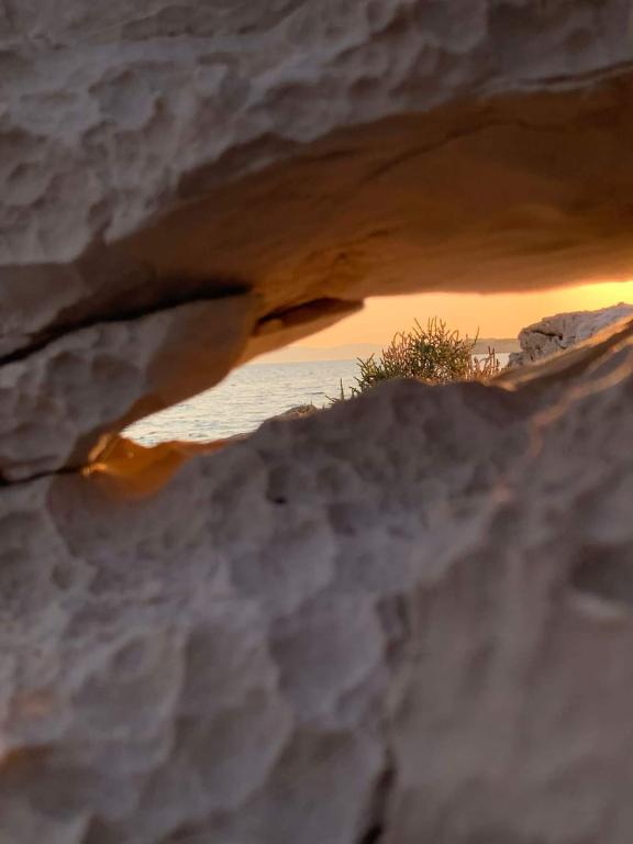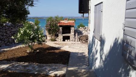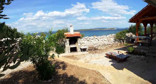 Kućica je smještena 10 m od mora sa pogledom na more. Smještena u uvali sa pješčanom i betonskom plažom, okružena netaknutom idiličnom prirodom. Udaljenost od susjednog objekta je 500 metara. Udaljenost od centra mjesta 500 metara - udaljenost od mora 10 metara - vez za brod se nalazi ispred kuće. Kuća ima terasu. Mogućnost dostave namirnica (u dogovoru s vlasnikom uz naplatu) ili samoopskrba u otok Vrgada svojim plovilom-svaki dan. OPIS: kuća ima 2 spavaće sobe. El. energija je od 12 V ili 220 V (na solarno), rasvjeta, frižider na plin. Voda je kišnica iz gusterne,instalirana u kući, princip zagrijavanja vode uz pomoć vanjskog bojlera ( s vodom se treba ophoditi štedljivo). Mogućnost organiziranja promjene posteljine i čišćenje prostora od strane vlasnika jednom tjedno. Mogućnost kupnje svježe ribe u ribarskom selu. Mogućnost korištenja veza za brod na bovi ispred kuće. Parking za auto osiguran u Murteru. Prijevoz se vrši brodom iz Murtera uz naplatu.