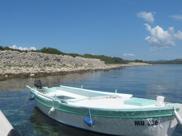 Imali smo priliku provesti odmor u kući i želio bih pisati o iskustvu. Otok je mali i na njemu se nalazi samo jedna kuća, tako da možete uživati u moru u potpunoj privatnosti. Brod će doploviti ili pristati u blizini, inače nećete sresti nikoga. Plaža nije pješčana, već šljunčana i betonirana, ali je ulaz u more gladak, a more plitko. S nama su bila djeca i nije bilo problema. Prilaz je moguć i stepenicama, iako je more do struka. Kuća je bila čista, mirisne posteljine i ručnici dostupni. Komercijalna voda, za kuhanje i piće potrebno je ponijeti svoju vodu. U umivaoniku, umivaoniku i tušu teče samo hladna voda. Topla voda je vani. Tu je bačva vode koju će grijati sunce. Ne očekujte toplu vodu, ali dovoljno za tuširanje, bez problema čak i pranje kose. Sjajno iskustvo za djecu. Svjetlo od 12 V, s tim nema problema. Mobilni telefoni i računala mogu se puniti na rezervnom izvoru, drugi uređaji ne mogu. Frižider je plinski, dobro je hladio, ima mali zamrzivač. Posuđa ima dovoljno, ima i ulja, brašna, malo tjestenine, šećera itd., wc papira, papirnatih salveta. TV i radio nismo probali, nije bilo potrebe. Iznajmljujem motorni čamac, ali pazite, bez kapetanske dozvole neće ići, nema drugog čamca. Ali možete se dogovoriti s vlasnikom i za naknadu od 120 eura on će vas odvesti na kopno i onda natrag. Bilo je i komaraca, ali ništa strašno, tu i tamo koji, definitivno ne toliko kao na kopnu. Ali ono što preporučujem je sprej protiv insekata, mravi su se probili do kuće, samo smo trebali pošpricati cestu repelentom i nestali su. Vlasnik je ljubazan, uslužan. I naš rezime, miran odmor bez ljudi, puno odmora i komad mora koji nam je neko vrijeme pripadao.