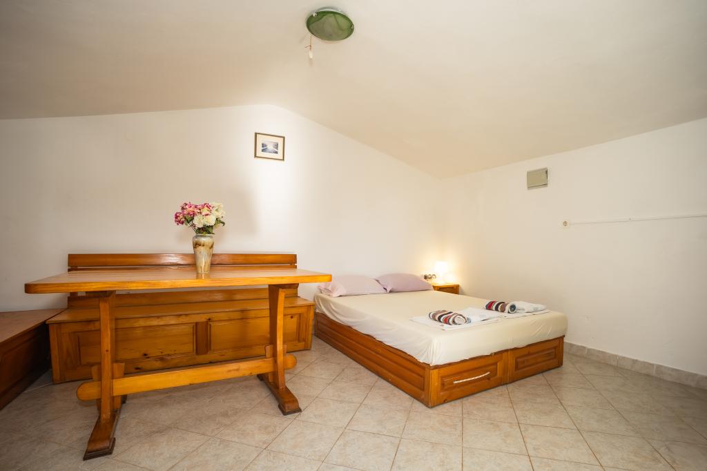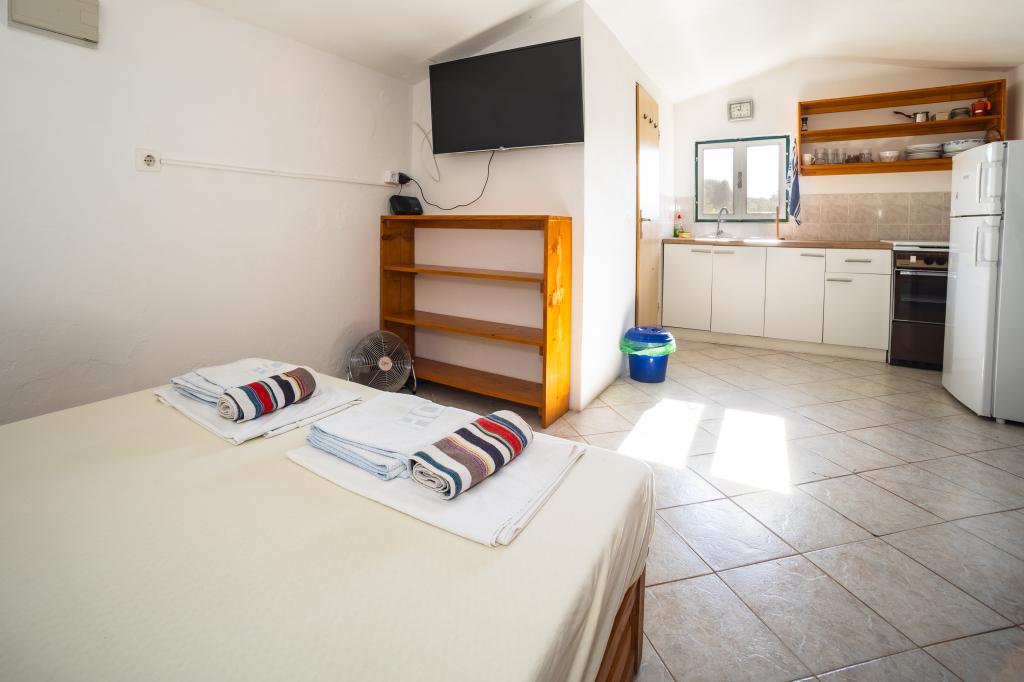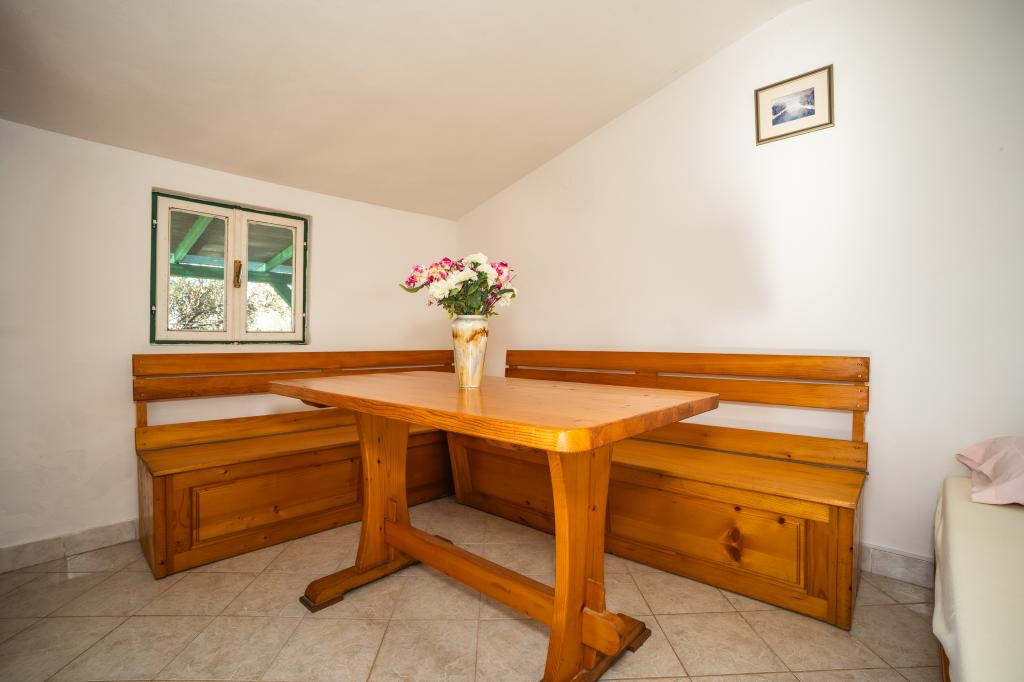 Ribarska kuća sa prekrasnim pogledom na more se nalazi na izvrsnoj lokaciji samo 30 metara udaljen od mora na prekrasnoj murterskoj plaže Podvrške. Ribarska kuća ima solarne ploče iz kojih se dobija struja (mogu se koristiti manji uređaji ). Hladnjak i kuhalo su na plin. Voda je dobra za tuširanje (iz vodovoda ili kišnica), grijana suncem. Vode ima dovoljno ukoliko se racionalno koristi. Ribarska kuća ima površinu od 25 m2. Ima jednu spavaću sobu u kojoj mogu spavati 2 odrasle osobe. Ima dnevni boravak. Ima kupaonicu sa tuš-kadom. Površina Balkon/terase je 30 m2. Parking je osiguran i uključen u cijenu. Postoji vanjski roštilj koji se može koristiti. Ribarska kuća je oko 1000 m. udaljena od centra mjesta a 30 m. od mora ili prve plaže u mjestu Murter. Kućni ljubimci su dozvoljeni uz dodatnu naknadu.