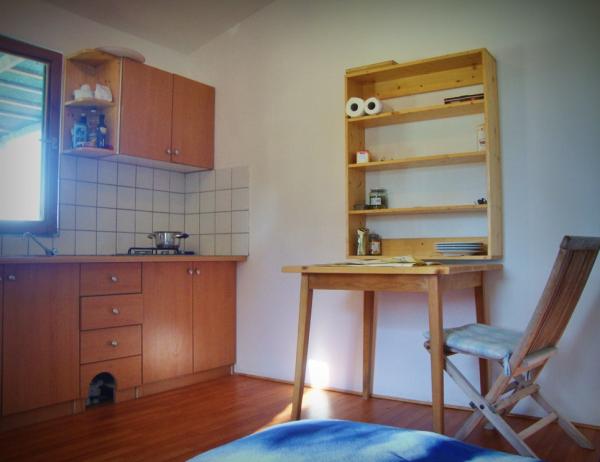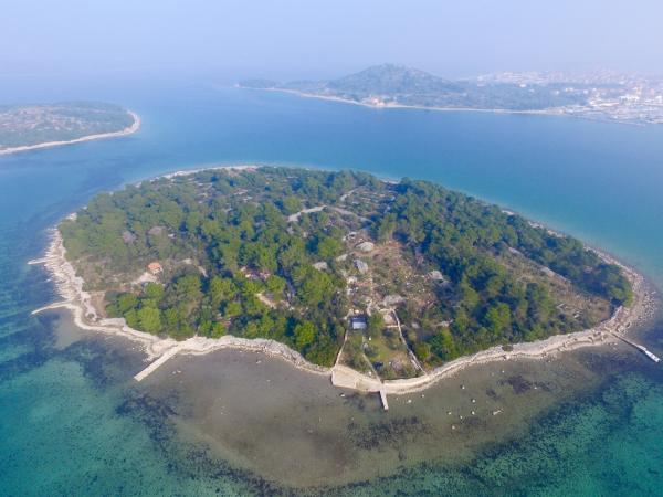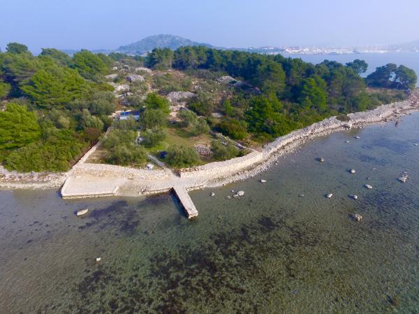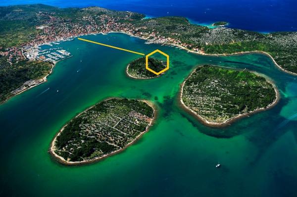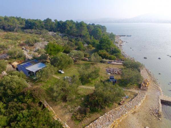 Dosta vam je punih plaža? Tražite mir i prirodu? Tražite nešto drugačije? Nudimo doživljaj gotovo privatnog otoka! Mala kućica od drva, za dvoje ljudi ili par s malim djetetom, za ljetne praznike. Mjesto gdje možete uživati u miru i prirodi u masliniku od 800m2, skoro sami na otoku. Dužina boravka je minimalno 7 dana. Kućica ima svoju plažu, kuhinju, gril i pristanište za brod. Kučica ima pitku vodu i električnu struju (solarno). Ima WC. Tuš je vanjski. Mjesto Murter nalazi se u neposrednoj blizini (300 metara) što je otprilike 10 minuta brodom.