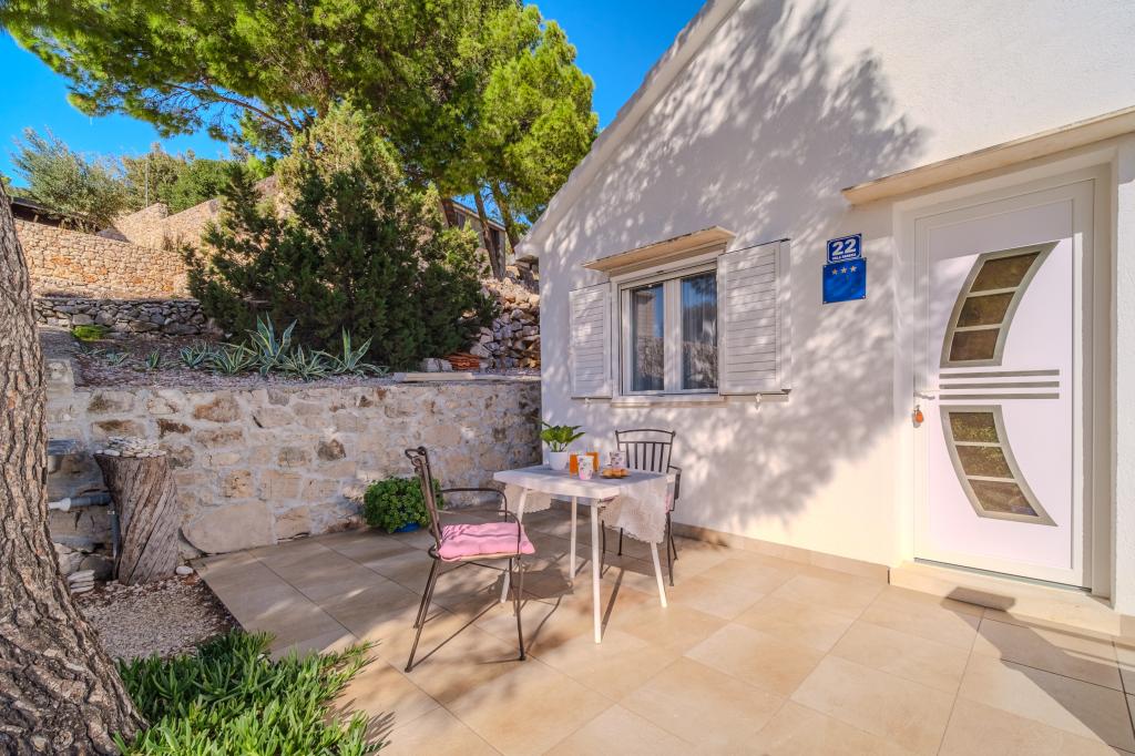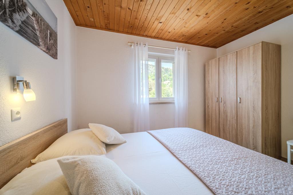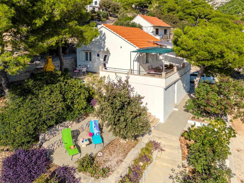 Svoj mir i zadovoljstvo pronaći ćete u tihom okruženju, zelenom krajoliku, čistom moru i dubinama podmorja koji će vaše ljetovanje učiniti nezaboravnim iskustvom. Kuća se nalazi u mirnoj uvali u borovoj šumi, udaljena 80 metara od plaže. S prostrane terase se vidi duga šljunčana plaža, more i otok Hvar. Kuća ima dvije spavaće sobe, kuhinju s blagovaonom, WC s tušem i toplom vodom, te terasu s garniturom za sjedenje i roštilj. Kuća je opremljena solarnom elektranom 220 V, 500 W. Zadnji dio puta do kuće je makadamska cesta u dužini od 1, 1 km. Opustite se u našem robinzonskom smještaju Eda, daleko od gužve i buke.