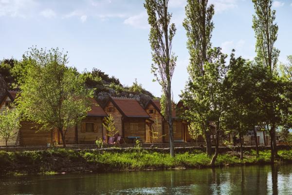 Na samoj obali rijeke Zrmanje, neposredno do jednih od dojmljivih slapova te kristalno čiste rijeke smješteno je imanje sa 4 prekrasna drvena bungalova. Svaki se sastoji od dvije etaže i prima 4 osobe (i 1 pomoćni ležaj). Na donjoj etaži nalazi se priručna kuhinja (hladnjak, električni rešo), a na gornjoj dva kreveta i pomoćni ležaj. Pored bungalova nalaze se roštilji i veliki drveni stolovi. Tuš kabine i sanitarni čvor, te perilica za rublje nalaze se u posebnom- petom bungalovu. Gosti imaju i mogućnost korištenja kamene konobe gdje se organiziraju druženja, gleda TV ili jednostavno sklanja od sunca među čvrste kamene zidove. Nalazimo se uz park prirode Velebit, na sat vremena vožnje od nacionalnog parka Krka, NP Plitvička jezera i NP Kornata, te na pola sata od gradova Zadar i Biograd na moru. U blizini je i jedan od najpoznatijih manastira - Manastir Krupa iz 13.st. Ukoliko se zaželite mora - mjesta Karin, Pridraga ili Novigrad na samo su 15tak minuta udaljeni od bungalova.